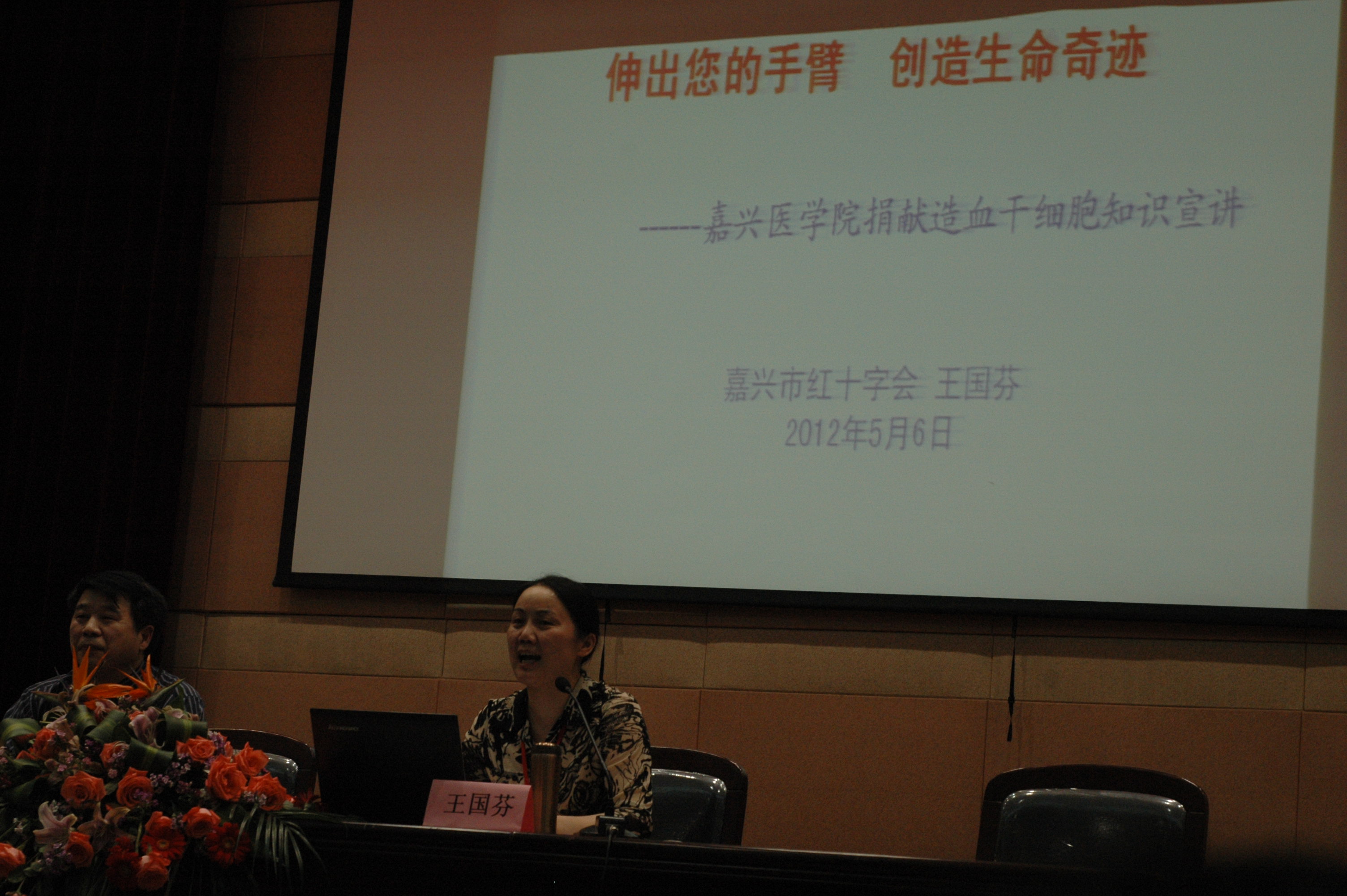 在TCL国际会议报告厅举办“造血干细胞捐献”宣讲会,嘉兴市红十字会副会长王国芬主讲,现场四百余名学生聆听报告。宣讲会由漫蛙漫画