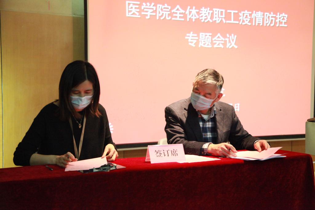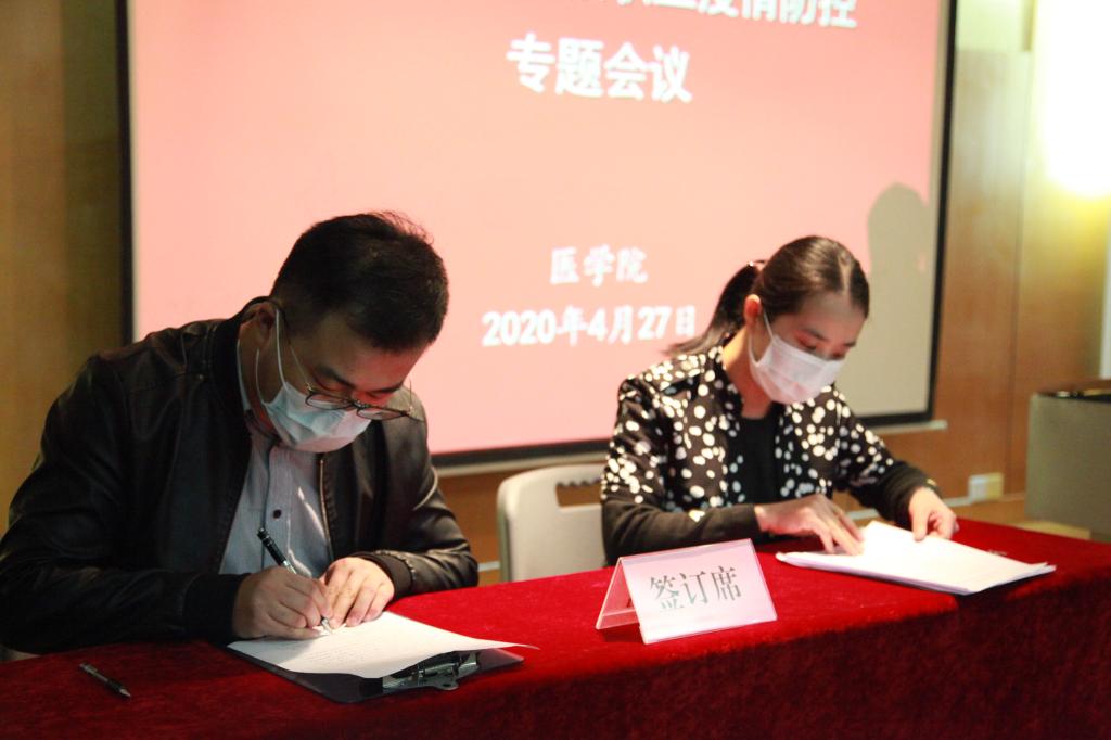 4月27日晚,漫蛙漫画 召开开学前疫情防控专题会议,全体教职员工参加会议。会议由学院常务副院长黄嬛主持。 会上,黄嬛宣读了“漫蛙漫画 疫情防控工作领导小组”“漫蛙漫画 疫情防控发热工作专班”成员名单。学院逐级签订了《新冠肺炎疫情防控常态化管理工作责任书》,将责任落实到系部、班主任和全体普通教师,层层压实。 院党委书记惠太望作总结讲话。他指出,4月28日起,学生将陆续返回校园,学院要高度重视开学返校前后新冠肺炎疫情防控工作,健全责任体系,打好疫情防控和教育教学两大硬仗。他提出六点工作要求。一要加强组织领导,全面摸排,如实报告;二要加强知识学习,改变传统习惯,建立健康生活方式;三要加强师生管理,严格请销假制度;四要关心关爱学生,彰显人文关怀;五要及时有序落实防控措施,按流程处理发热学生;六要做好管理服务,筑牢安全屏障。