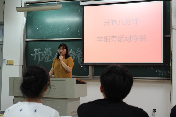 临床医学专业13级周若怡学姐以339的好成绩,成功通过硕士研究生考试。她通过自身的经历,向同学们分享了学习英语的方法、西医综合的复习、研友的重要性、考研和实习及与工作的关系5个方面的方法。同时也分享了她考研时的心路历程,她告诉同学们一定要坚持,要保持好的心态;要有一定的信心,坚定自己,不要让别人打乱了你的步伐;要有自己的目标,并努力的为之而努力。学姐说:在考试一步步来临的时候,我们的信心会一直在崩溃中重建,在重建后崩溃,但一定要坚持到底!坚持就是胜利!