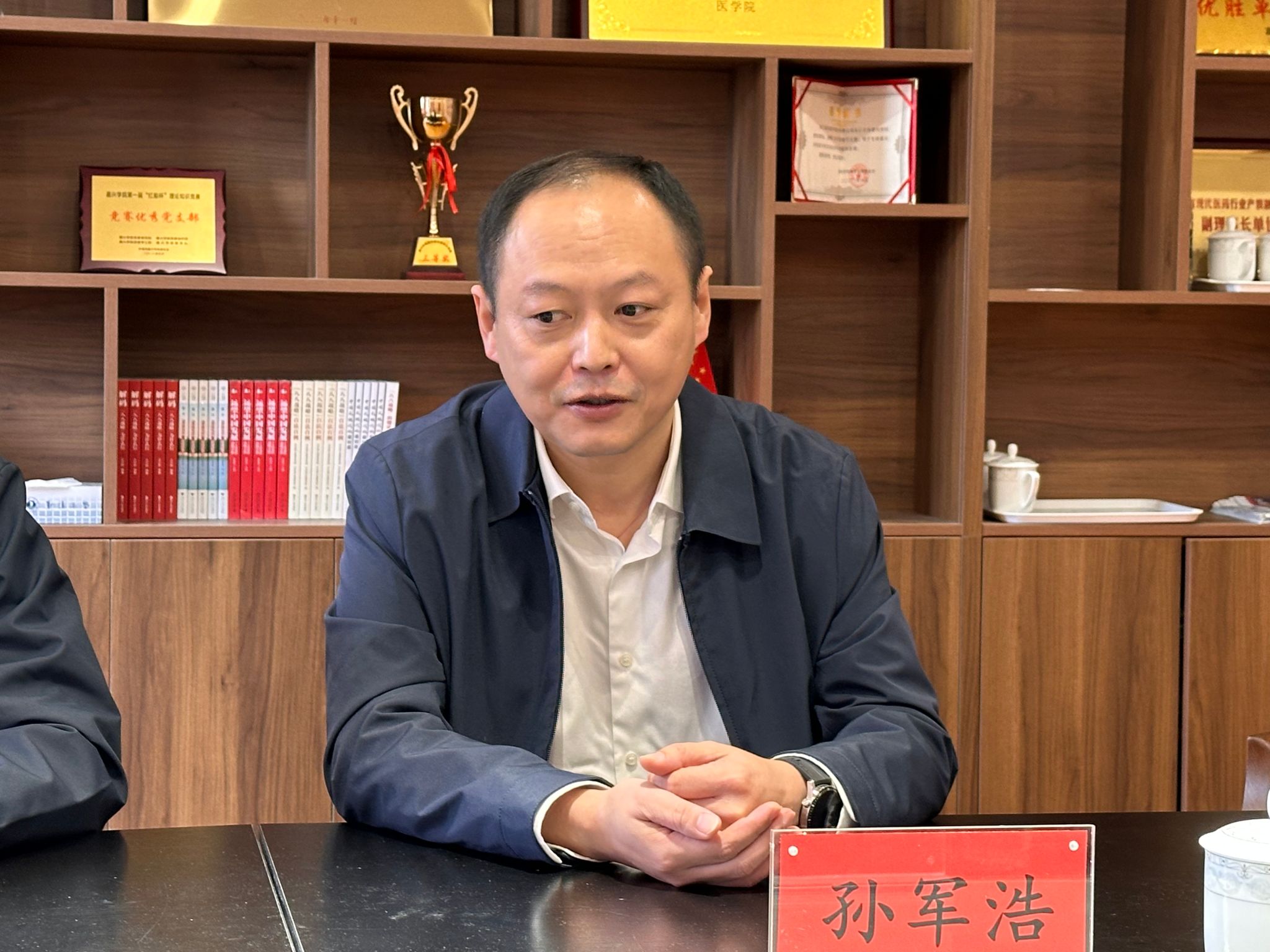 孙李丹、王磊、姜肖明在会上就科研合作及人才培养展开进一步沟通。