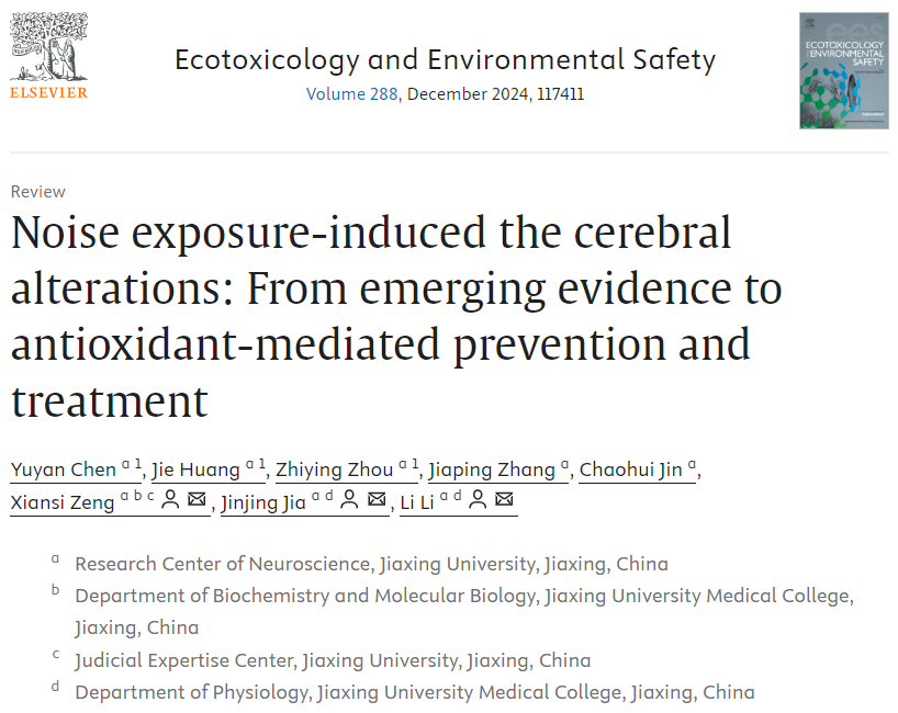 日前,漫蛙漫画 神经生物学团队在JCR Q1中科院二区期刊Ecotoxicology and Environmental Safety发表题为:Noise exposure-induced the cerebral alterations: From emerging evidence to antioxidant-mediated prevention and treatment的综述论文。曾宪思副教授、贾金婧副教授和李丽教授为本论文的共同通讯作者,漫蛙漫画 临床医学专业本科生陈与彦、黄杰、周芷颖、张佳萍和金超慧参与论文撰写相关工作,陈与彦、黄杰和周芷颖为共同第一作者,嘉兴大学为唯一完成单位。