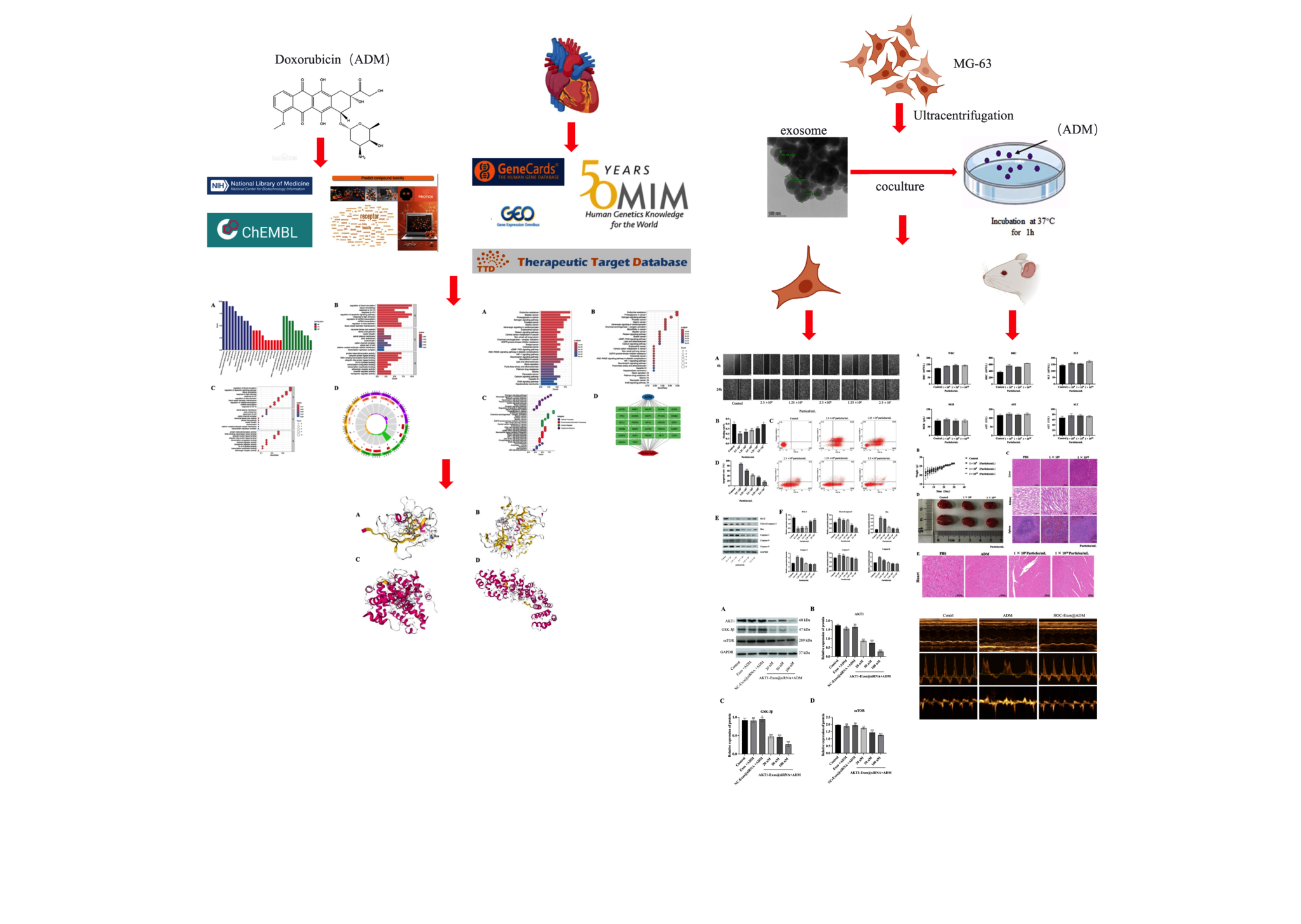 骨肉瘤(OS)侵袭性强、预后差,多柔比星(ADM)虽有效但因心脏毒性受限。本研究旨在探究 ADM 致心脏损伤机制,并开发外泌体介导的药物递送新策略以降毒。通过网络毒理学和分子对接技术,从公共数据库构建靶点库,经韦恩图分析确定ADM与心脏损伤的27个共同靶点(含 AKT1TP53 等),涉及凋亡、氧化应激和炎症等过程,GO KEGG 分析揭示相关生物学过程。此外,从人骨肉瘤 MG-63 细胞分离外泌体,负载ADM得到 HOC-Exos@ADM。体外和体内模型评估显示,该递送方式提高药物摄取量,增加骨肉瘤细胞凋亡;AKT1 表达降低会减少 GSK-3β mTOR 信号通路蛋白表达,致心肌细胞损伤,而此递送方式在动物模型中更安全。结果表明,外泌体递送系统可降低ADM心脏毒性,改善骨肉瘤患者临床结局。