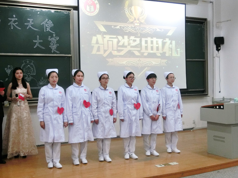 一席白素衣,一双纤纤手,一颗炽热心。本次白衣天使大赛在同学们掌声中圆满落幕。最终张颖荣获冠军,黄璐瑶荣获亚军,祝双双荣获季军,杨艳荣获“微笑天使”称号。在如花般的流年里,我们应该揣一颗天使的梦想,青春不悔,岁月依旧,成为专业的白衣天使。