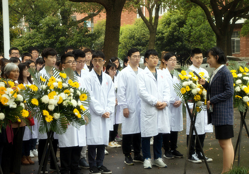 联合举办的追忆无语良师活动在梁林校区庄严举行。遗体捐献者家属、嘉兴市红十字会代表、学院教师代表和学生代表纷纷前来悼念。