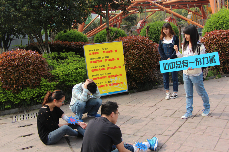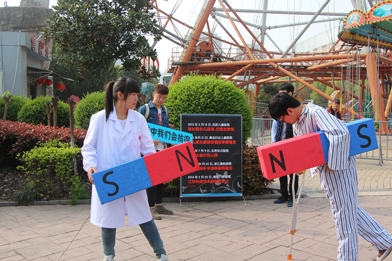 9时,同学们各就各位,“行为医塑”活动正式启动。三个场景吸引了无数路人,让他们不自禁得停下脚步,用心去感受医患关系。场景一:鉴于医生与患者多次发生冲突,关系紧张,两者缺乏信任感相互排斥,“黑暗中我们会彷徨”即是医学生们心里的真实写照。场景二:近年来,全国多次发生重大灾害事件,在医生护士奋斗在第一线时,医学生们“心中总有一份力量”坚持着,让我们尽最大的力量为社会做贡献。场景三:“信任”是缓解医患关系的前提,让我们用一颗真诚的心去点燃生命之灯,“未来一定值得期待”!同学们细心的为路人讲解三个场景的内在意义,呼吁大家在就医过程中相互信任,用一颗真诚的心去换取对方的信任,赢得了大家的点头称赞。
