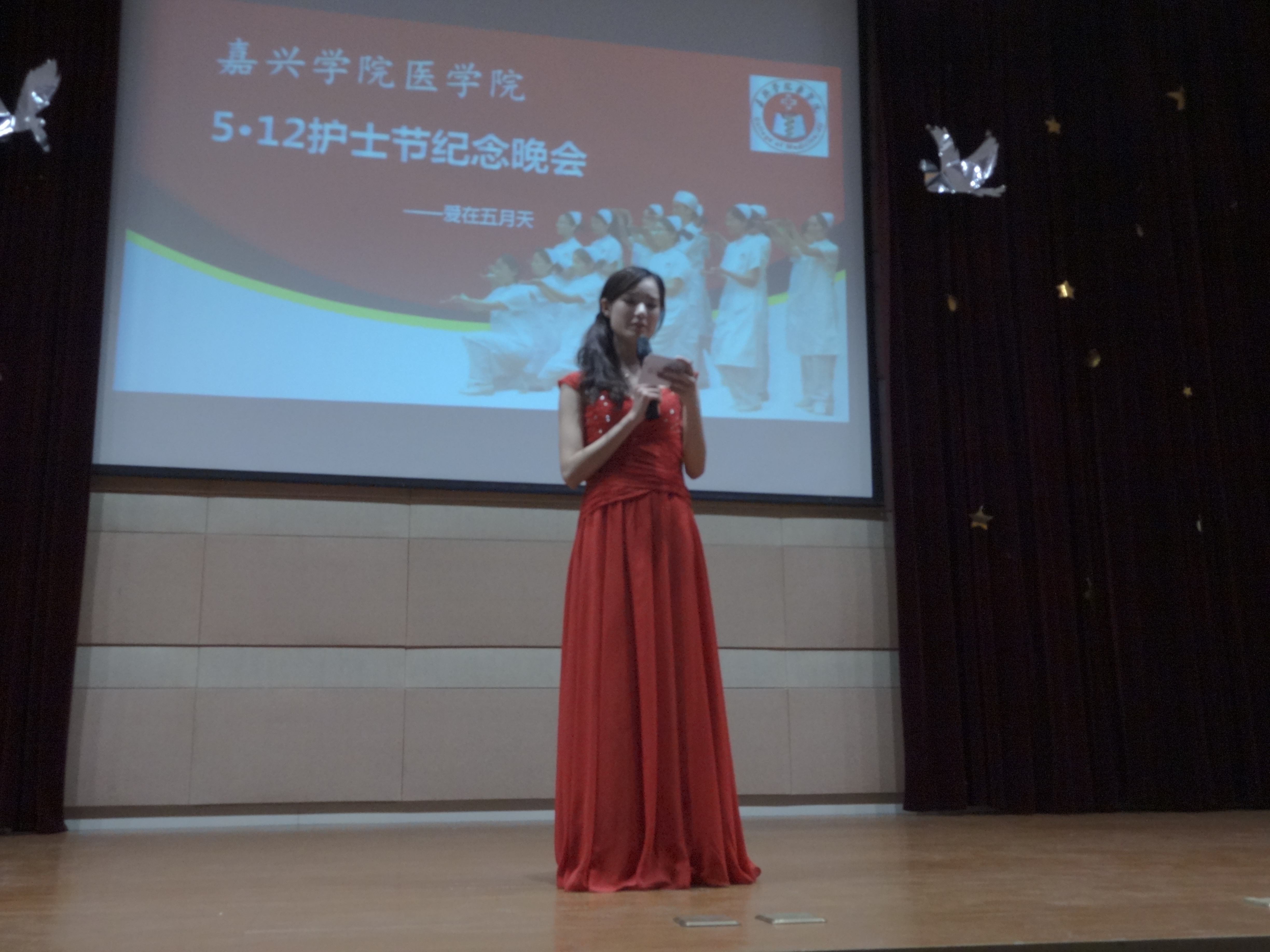 护理系主任肖素香老师的一曲《我爱你中国》,引起现场掌声阵阵,把晚会推向了高潮。随后,毕业于嘉兴卫生学校的优秀学生费叶萍学姐用亲身经历为我们描画了护理职业的圣洁与不凡,医院生活的点点滴滴都牵动起老师与同学们的情愫,让我们与学姐一起去贴近生命,去触摸、去聆听、去感悟。护理专业是人才济济的专业,个性十足的文化衫展示表现了护理同学的创造力与表现力,护理操作技能大赛奖状颁发及技能展现凸显出医护人员的专业水准。最后,护本112班的同学们以精彩的手语表演《隐形的翅膀》为本次晚会活动画上了一个圆满句号。