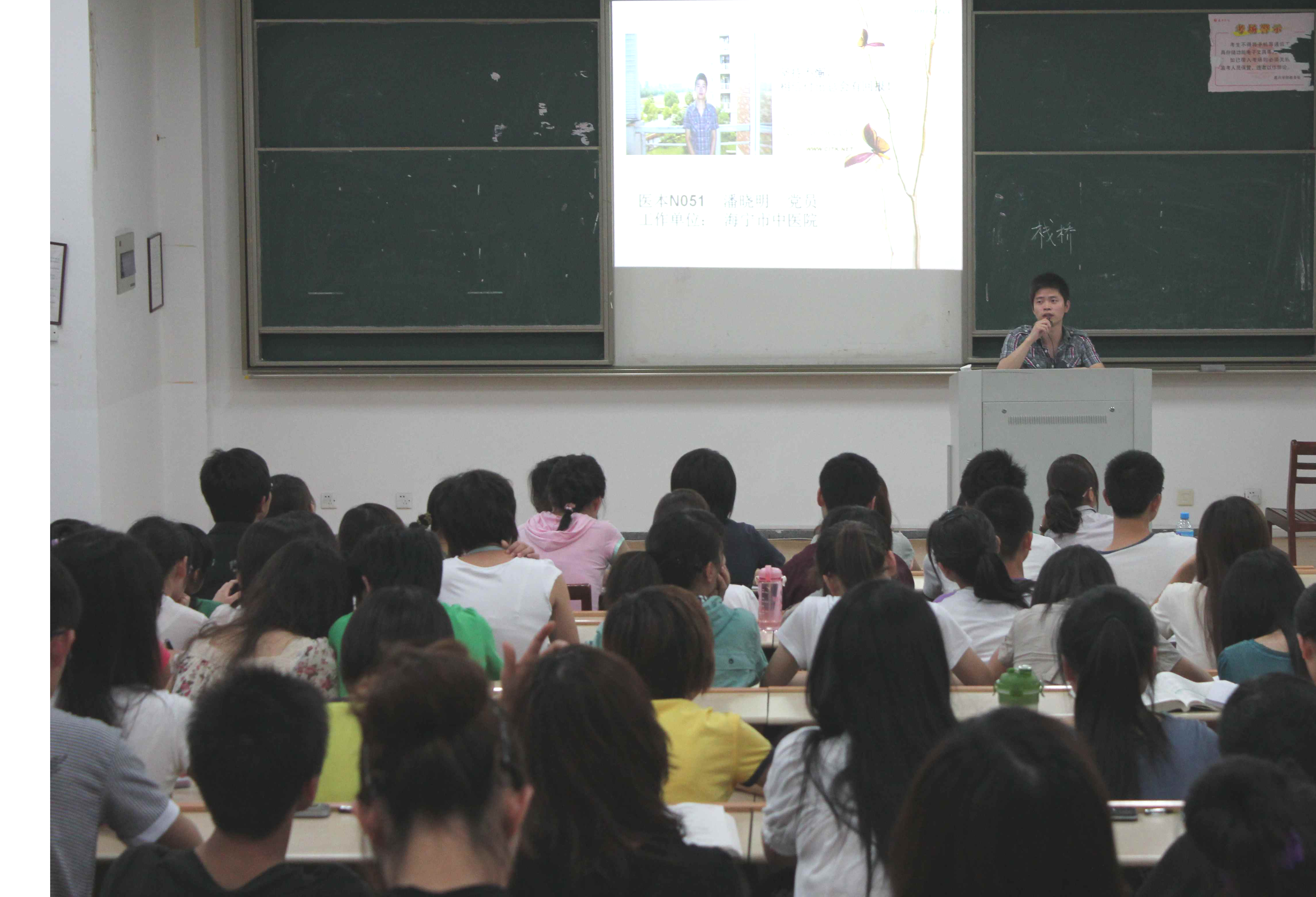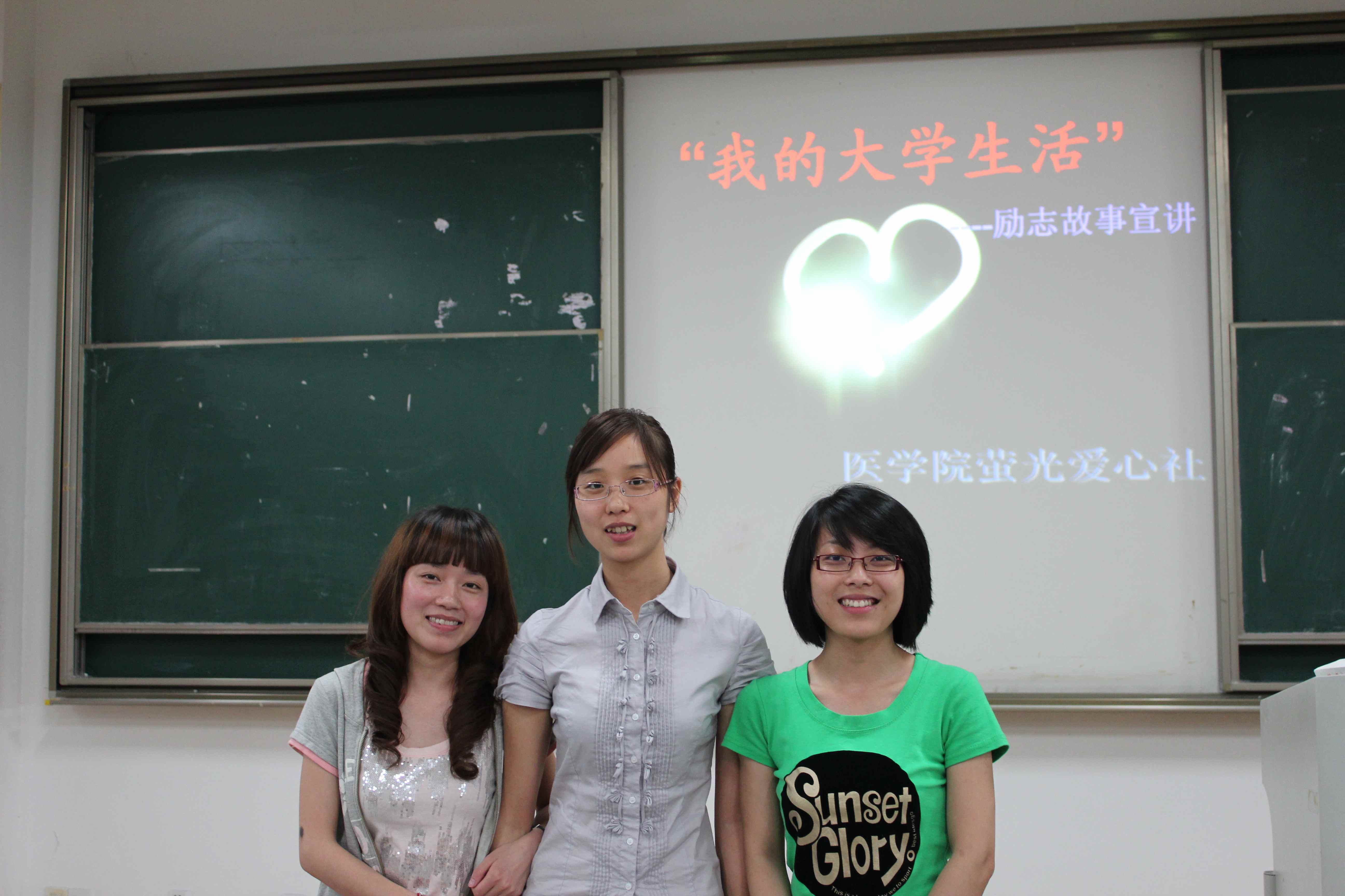 6月12日晚上6点半,在教四221举行了由荧光爱心社承办的“我的大学生活”励志故事宣讲活动,漫蛙漫画 党总支副书记谢宏老师、学工办杨敏老师和社工委副主席孙巧云同学及漫蛙漫画 全体贫困生、荧光爱心社成员参加了此次活动。 本次活动特邀请了医本051徐欢、医本051的周少余、医本N051的潘晓明和护本061的吴毅疑四位2010届毕业生来为大家讲述他们不平凡的大学生活,和学弟学妹们分享他们在学校、在实习中所获得的宝贵经验,以此来激励大家学会把握自己,励志成才。 最后,谢宏老师做了总结发言,她强调:虽然我们不能选择自己的出生,但我们可以选择自己的人生,同时她也勉励大家:选择坚强,选择不松懈不放弃,我们的人生道路才会走得更好、更远!