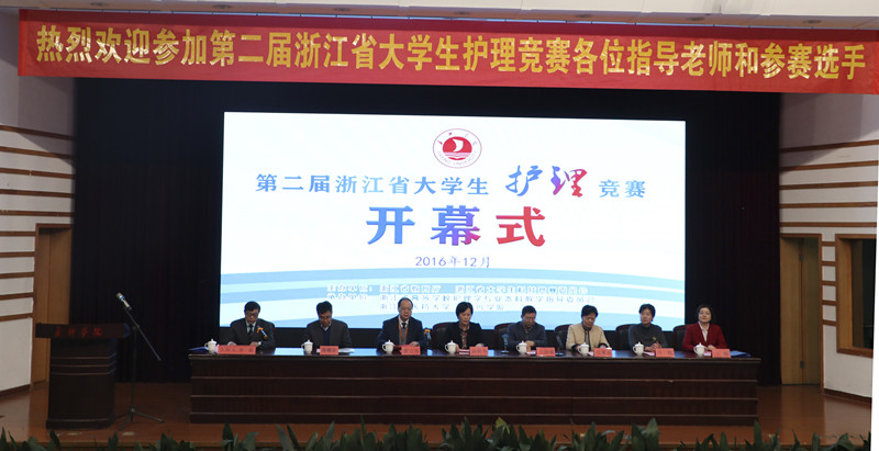 2016年12月10日上午8时,第二届浙江省大学生护理竞赛开幕式在嘉兴学院梁林校区TCL报告厅如期举行。浙江省教育厅高教处副处长王国银教授,浙江省高等学校护理学专业本科教学指导委员会主任委员、浙江省大学生护理竞赛委员会主任委员、浙江中医药大学党委书记孙秋华教授,嘉兴学院党委书记黄文秀教授,嘉兴学院漫蛙漫画