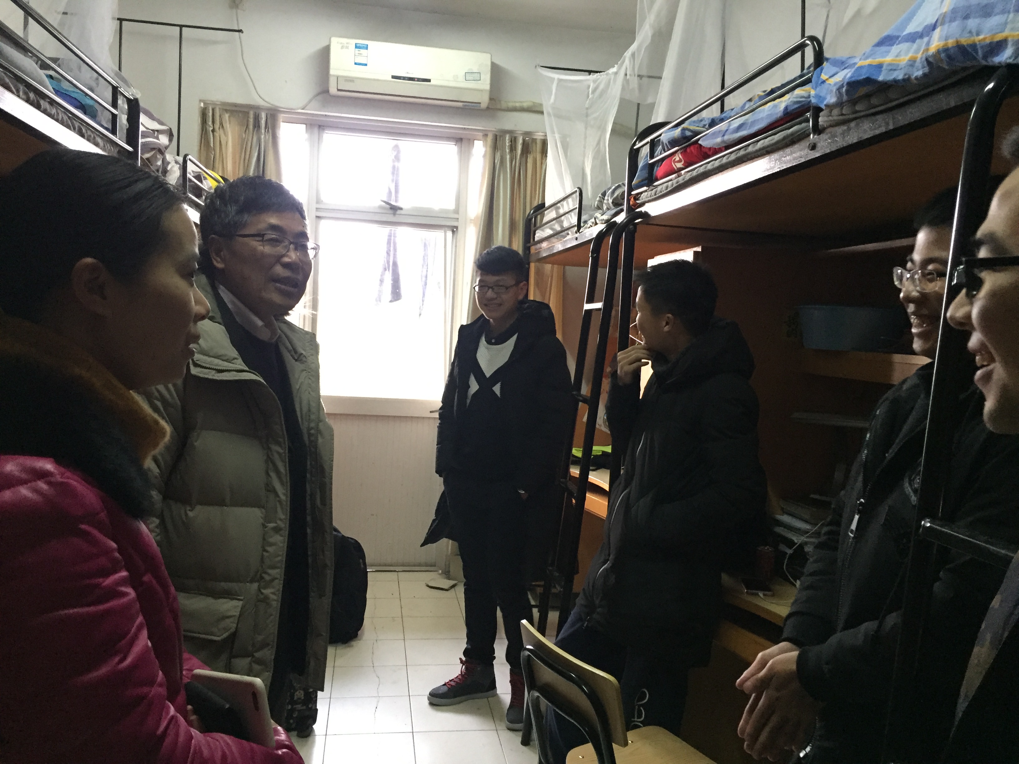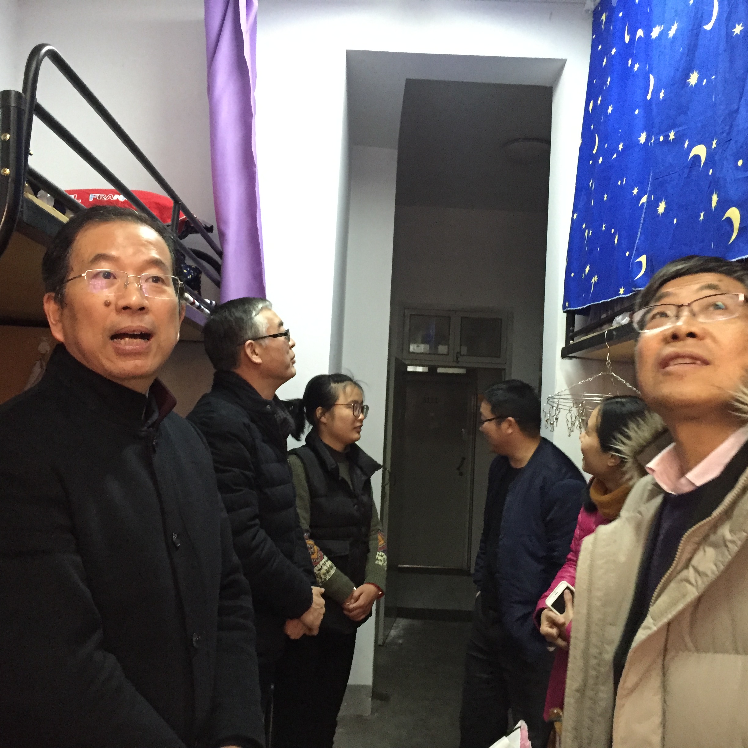2月14日下午,新学期伊始,校长盛颂恩在学院领导的陪同下,走访了我院学生寝室,了解学生入住情况。