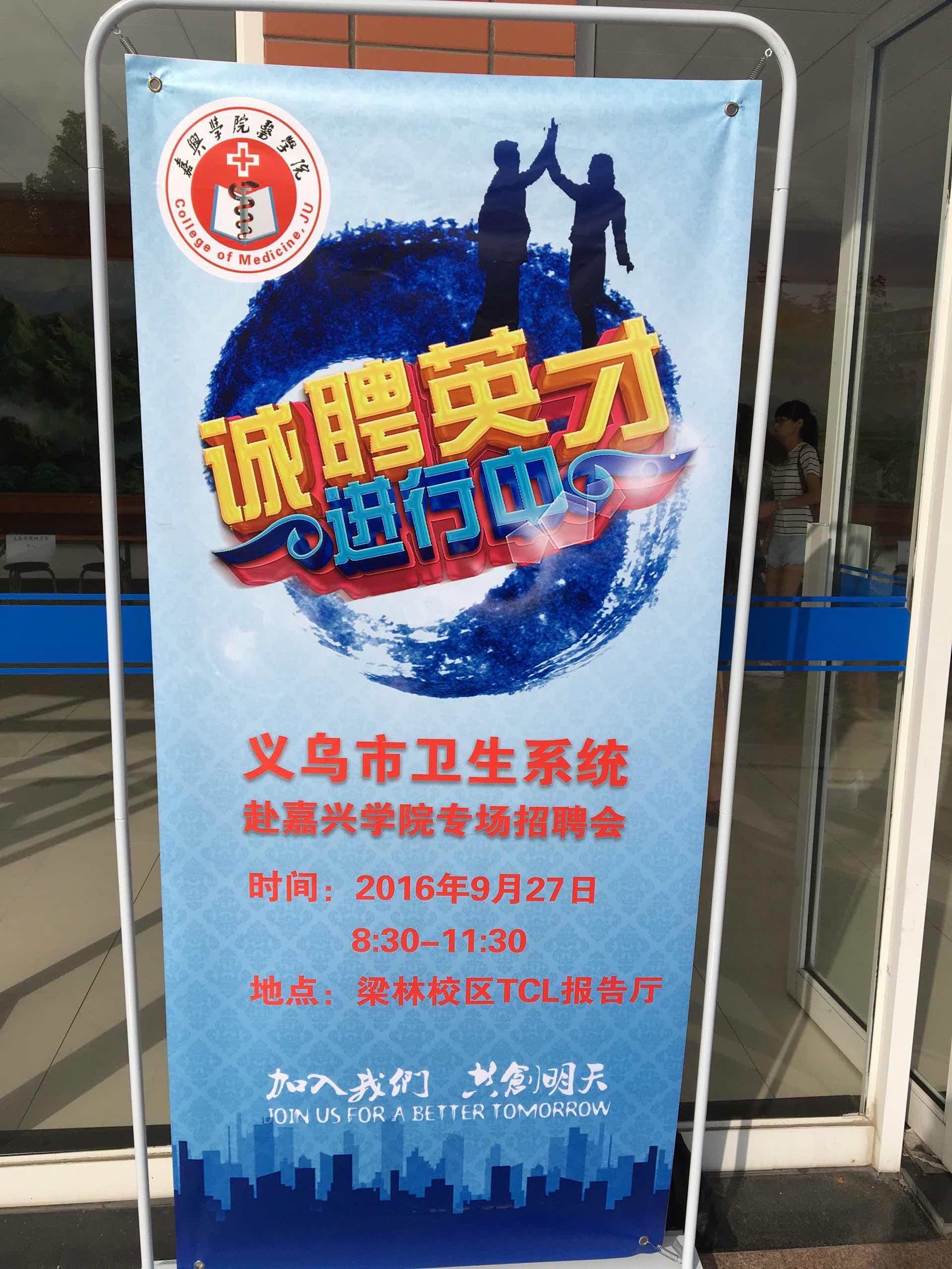 2016年9月27日,我院在梁林校区TCL报告厅成功举办义乌市卫计系统专场招聘会。招聘会定于上午8:30开始,但是上午八点刚过,就陆陆续续有学生来现场咨询,并当场报名上交简历。经过两个多小时的沟通交流,然后报名递交简历。紧接着,下午义乌市卫计系统对报名同学进行了现场笔试和面试。 经过激烈的角逐,义乌市卫计系统最终确定了岗位人选,此次招聘会,顺利结束。