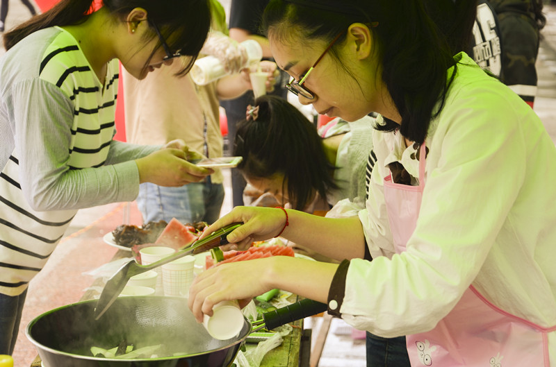 参加本次文化节有来自各学院的八支参赛队伍。在各个队伍进行了简短的介绍之后,比赛正式开始。各个队伍的选手们信心满满、斗志昂扬,队员之间配合默契,用自己所掌握的药膳知识,全神贯注的做好每一道药膳。比赛现场同时进行有趣的药膳知识竞赛等一系列的活动,活跃了现场的气氛。历时一小时的比赛结后,各位评委老师以及各个大众评委对每支队伍的药膳进行了打分与投票。