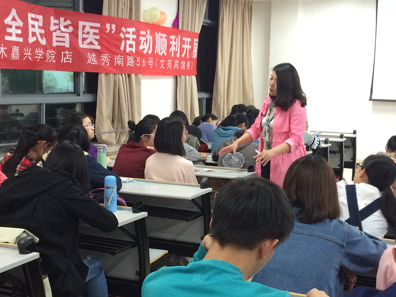 2016年4月22日晚,由嘉兴学院漫蛙漫画 青年志愿者协会主办的“白衣天使,做自己的天使”活动在梁林校区八号楼205教室顺利举办。三草两木嘉兴学院店特邀上海护肤美容师李俊来为医学生们开展有关护肤的讲座。