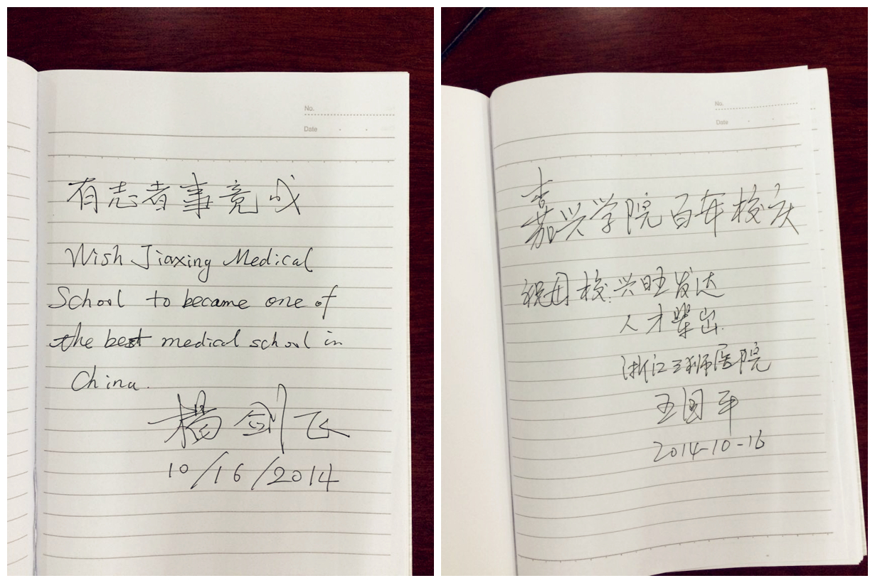 在座谈会的尾声,杨博士、王院长为嘉院百年校庆题字,送上自己对母校美好的祝愿,愿母校兴旺发达,人才辈出!