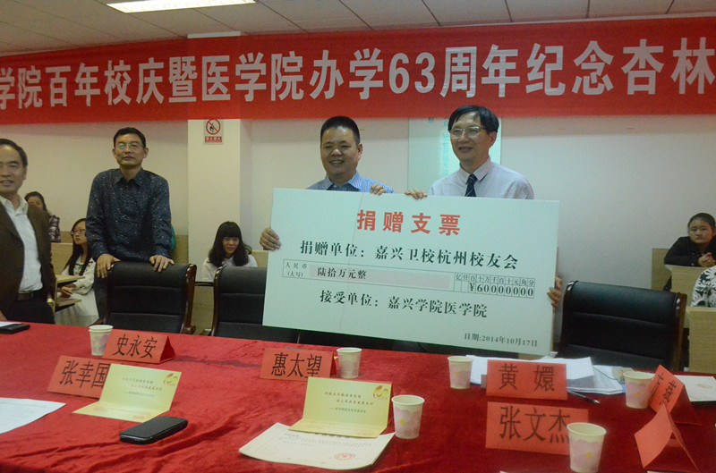2014年10月17日14:30,嘉兴学院百年校庆暨漫蛙漫画 办学63周年纪念杏林基金捐赠仪式在漫蛙漫画 实验中心601示教室隆重开幕。校党委副书记史永安老师,漫蛙漫画 院长孟继鸿老师,漫蛙漫画 党委书记惠太望老师,副院长黄嬛老师,漫蛙漫画 各位优秀校友及部分在校师生一起见证了本次杏林基金捐赠仪式。