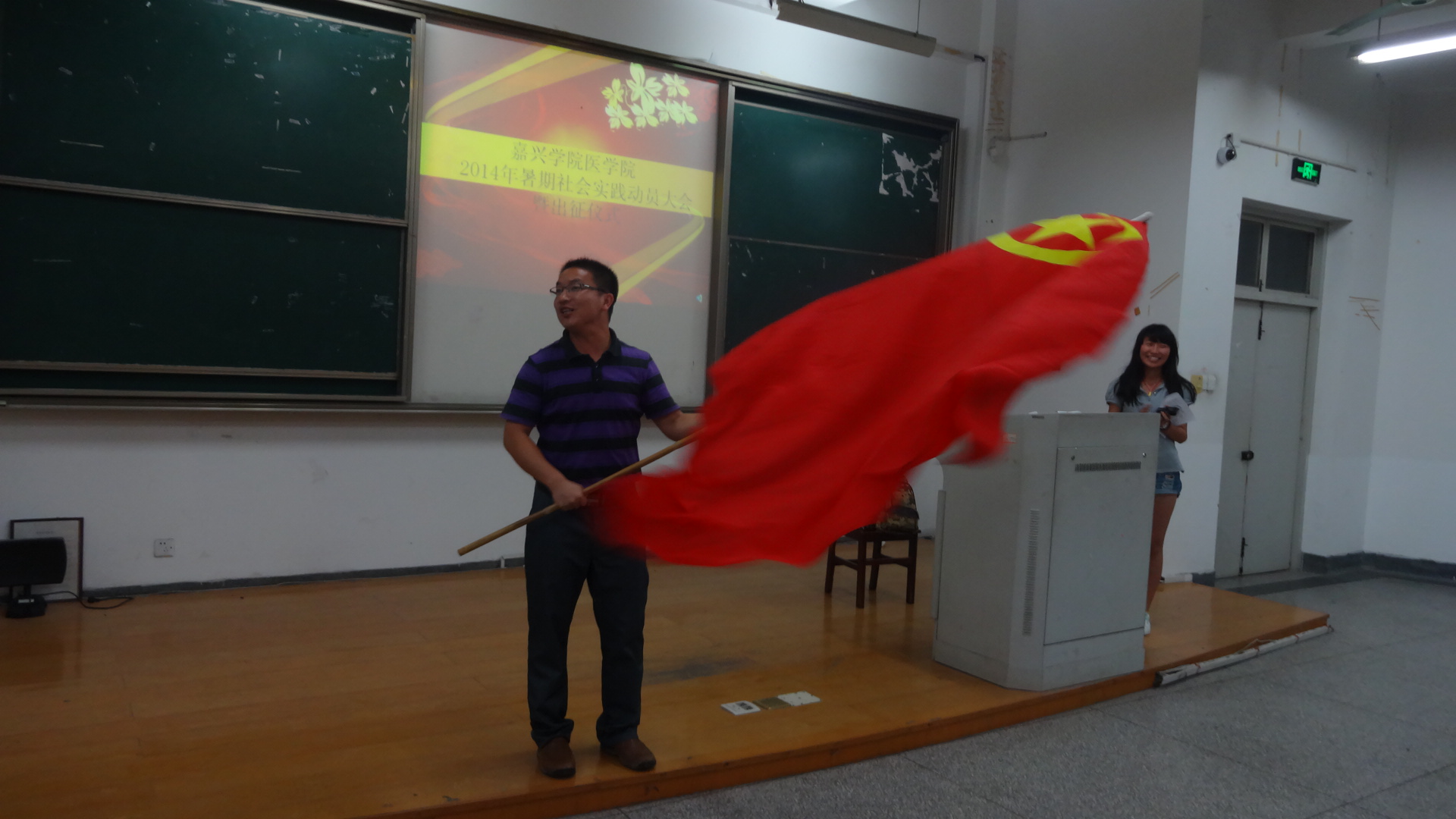 今年我院共组建17个暑期社会实践服务团,参加人数共279人,分赴嘉兴、宁波、衢州等八个地区。首先,黄金珠老师对同学们给予了肯定,接着就社会实践的意义作动员讲话,希望同学们能够通过亲身体验学习做人做事的方法,为将来打好基础。简明扼要的四点要求为此次实践活动指明方向。随后,赵丽萍老师向同学们介绍暑期社会活动相关事宜安排,提醒队员们注意安全,保持通讯顺畅及时,并在活动结束后做好团队总结。最后,由黄金珠老师向团队代表许云树同学授旗,飞舞的团旗为本次动员大会画上圆满句点。