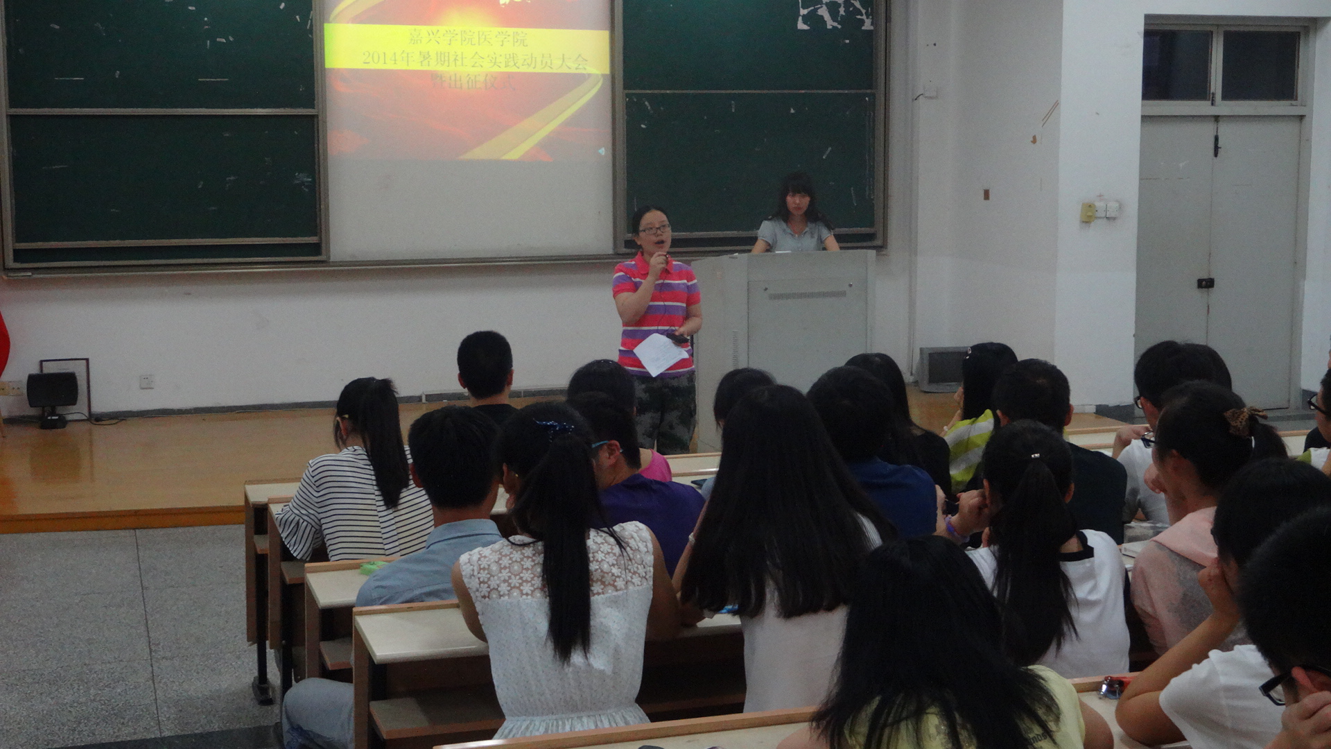 7月3日晚19:00,嘉兴学院漫蛙漫画 2014年暑期社会实践动员大会暨出征仪式在梁林校区1号楼221教室开幕。漫蛙漫画 党委副书记黄金珠老师,团委书记赵丽萍老师出席,暑期社会实践团队全体队员参加本次大会。