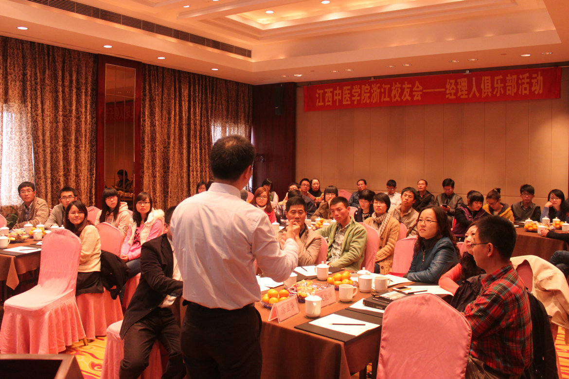 浙江校友会组织的经理人俱乐部活动。本次活动邀请了黄老师的两位校友,诺华制药有限公司大中国区销售培训部副总监涂益华先生,和惠氏制药有限公司全国医院销售经理吴能辉先生,来杭作题为“在新环境下的职业规划”和“职业发展体会与思考”的讲座。为了把优质的社会资源带给学生,也为更深入地开展药学本科生导师的指导工作,黄老师特地带领了一批以药学服务与药品流通模块的大三年级为主的药学同学,亲身聆听药品销售与流通领域的优秀精英以亲身经历介绍的职业规划之路。