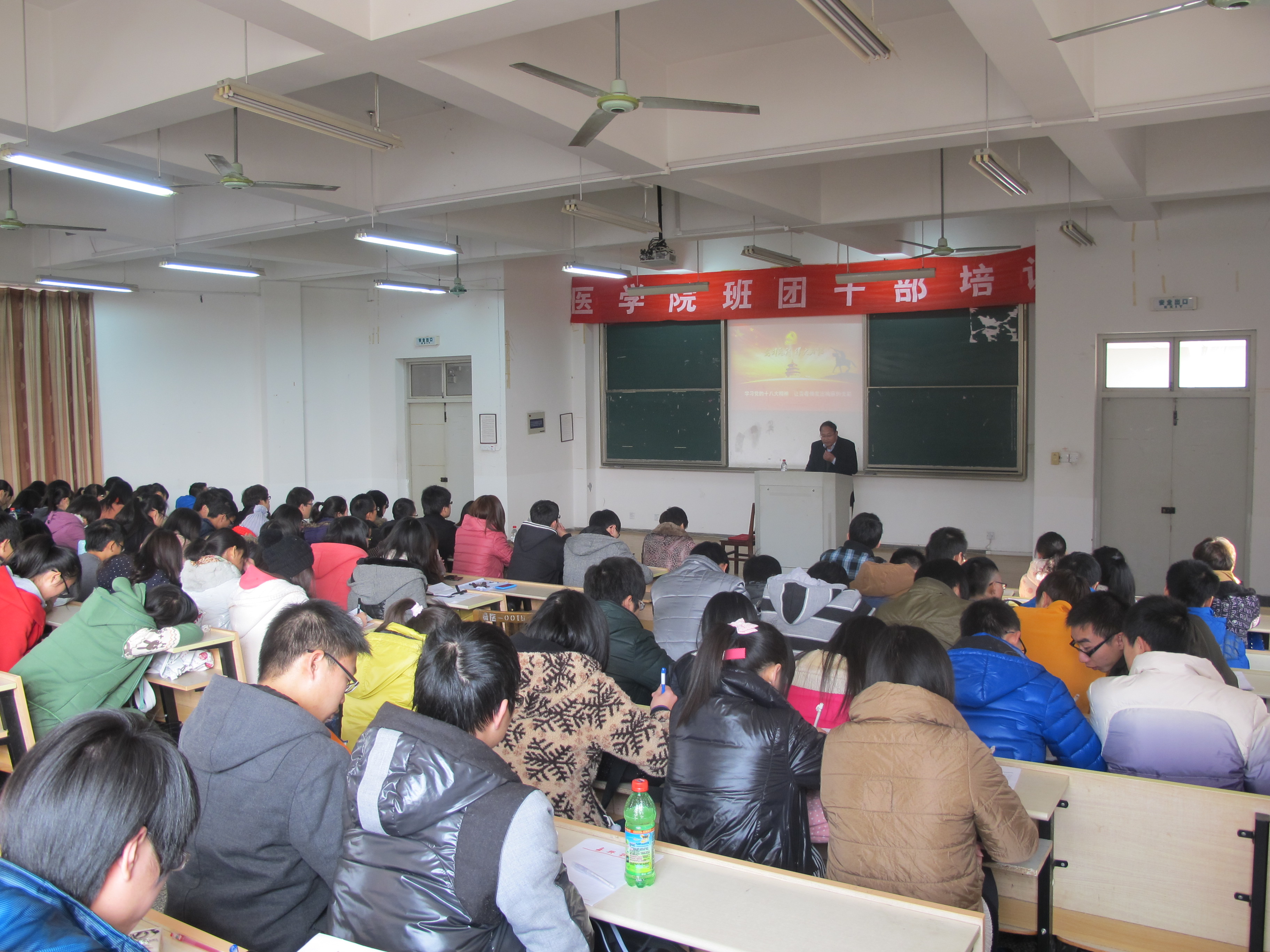 于1号楼221教室召开班团干部培训会,会议邀请了嘉兴学院党委副书记吕延勤为学院全体团学干部和2012级班团干部作题为“学习党的十八大精神,让青春焕发出绚丽的光彩”的报告,会议由漫蛙漫画