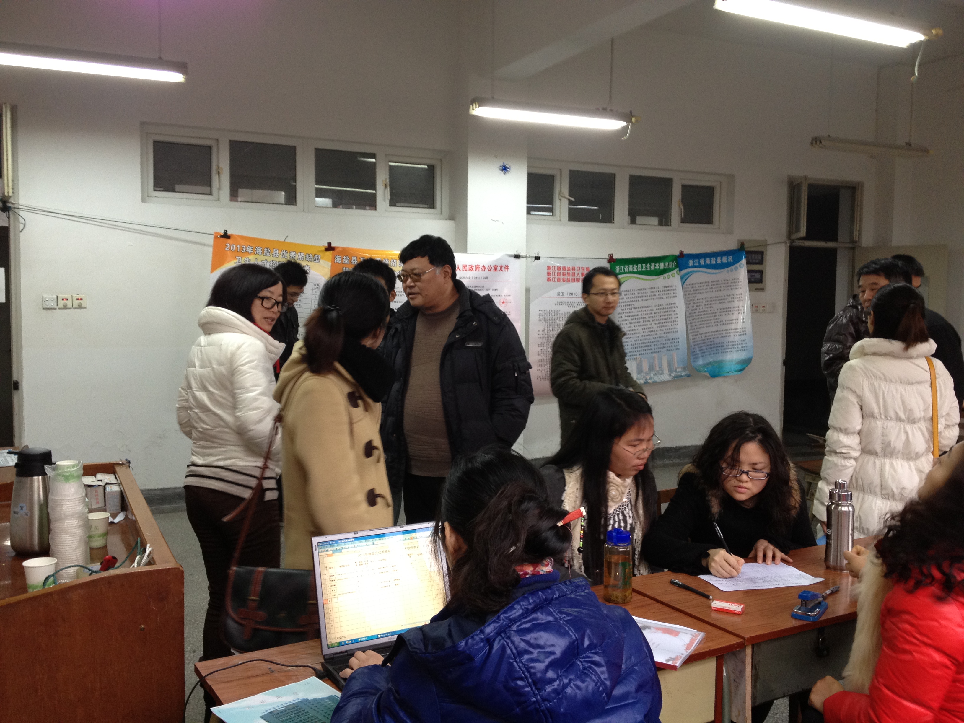 2012年12月27日上午,漫蛙漫画 在梁林校区1号楼133—135教室举办了2013届毕业生“海盐县卫生局专场招聘会”。 漫蛙漫画 始终把毕业生就业工作摆在重要位置,学院领导对此次招聘会给予了高度重视,积极联系海盐县卫生局和人事局,本次招聘会县医疗卫生单位共提供事业编制工作岗位102个。共有50余名毕业生报名投递简历,并接受面试考核,结果将随后揭晓。