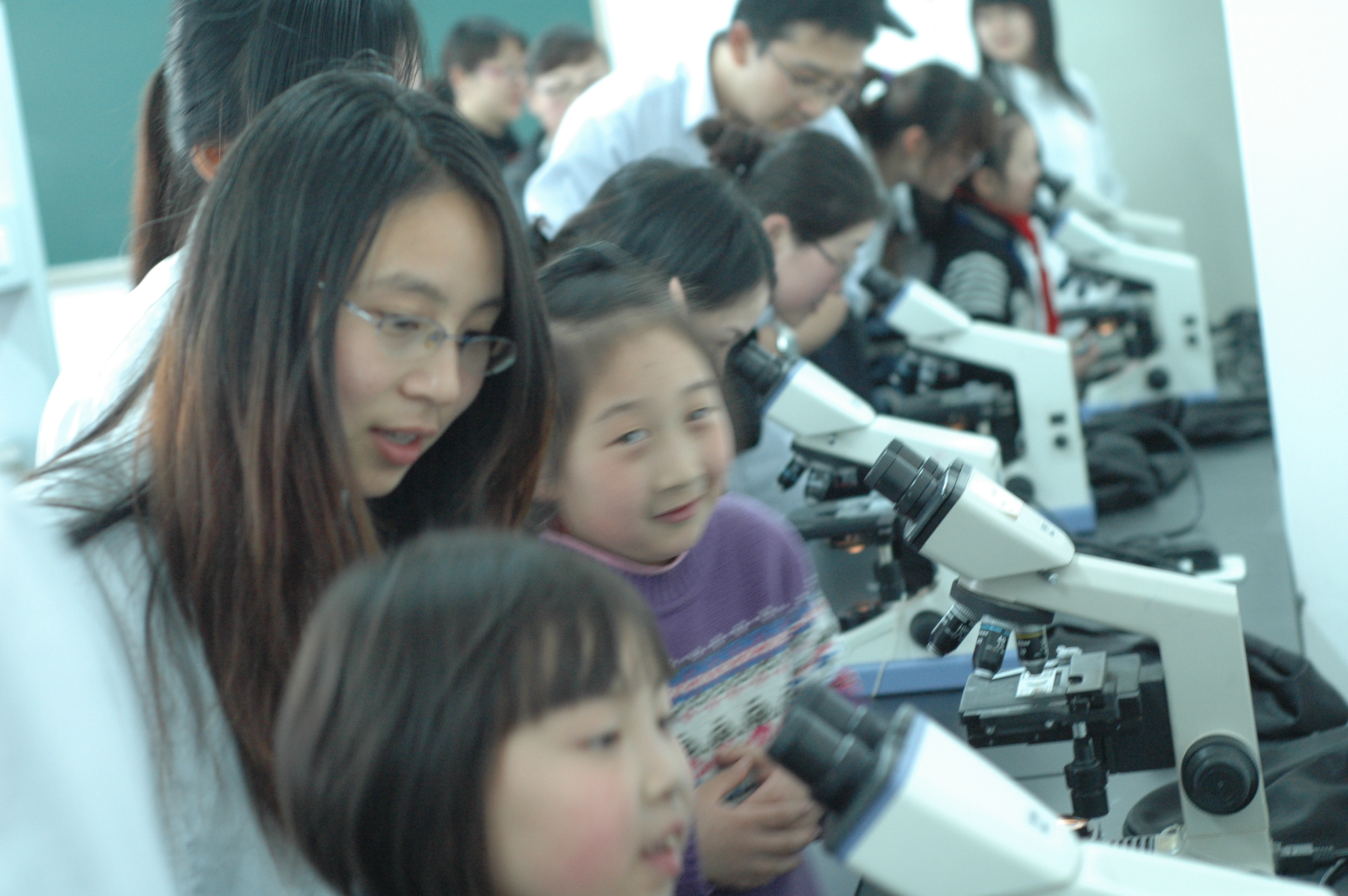 2011年4月1日下午,护理学生支部联合嘉兴实验小学举行“大手牵小手,传递医学知识”活动。 活动中,在护理学生支部师生党员的带领下,小朋友们参观了动物房和医学实验中心。在人体解剖标本实验室,师生党员向小朋友们介绍人体解剖的基本知识;在微生物实验室,徐水凌教授指导小朋友在显微镜下寻找血吸虫、蜱虫、蛔虫,并让小朋友走进细胞房观察肿瘤细胞;在手术实验室里,学生党员教会小朋友们七步洗手法。小朋友们在参观中过足了瘾,了解了简单的医学知识,学习了讲卫生的好方法。