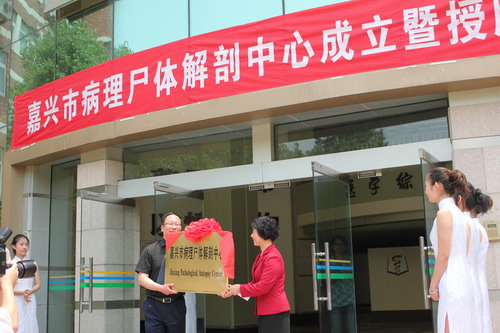 以此为契机加强学科建设,培育特色专业,进一步加强与市医疗卫生界的“产学研”合作。沈勤副局长代表嘉兴市卫生局对嘉兴市病理尸体解剖中心的成立表示热烈的祝贺,并对病理尸体解剖工作提出了要求:一是要加强尸检工作的领导;二是要完善尸检工作的规程;三是要强化部门间的配合支持。