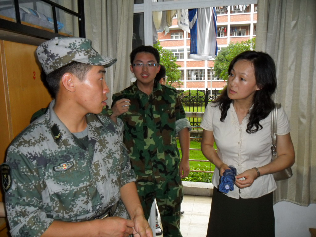 安排上,学院领导统筹规划,精心组织,以辅导员、班主任为军训工作成员,根据学院实际,做好军训计划,编制连、排,制定应急方案,建立考勤制度。军训工作中,密切配合,整合力量,充分调动教官、辅导员、班主任的积极性,形成军训工作齐抓共管的格局。安排工作组成员值班,做好走访各连、排工作,严格执行考勤,登记出勤情况。重视学生内务整理,以G5B124、G5A104分别为男女生标准内务寝室,组织全体军训同学参观,教官、辅导员及学生干部进行指导,验收并评比学生内务整理情况。由于军训时间天气炎热,我院及时根据天气情况调整军训内容,做好后勤保障工作。军训工作外,我院注重宣传,营造氛围,军训期间编印《军训简报》,报道军训中涌现出的先进人物和先进事迹,交流学员参加军训生活的心得体会。