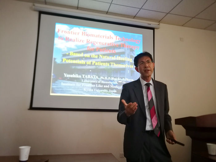 的邀请,浙江大学药学院副院长高建青教授,日本京都大学Yasuhiko Tabata教授和日本京都大学Jun-ichiro Jo 博士三位专家教授于6月20日(星期四)下午 14:30在梁林校区 1号楼 506会议室做了三场精彩的学术报告,题目分别为《干细胞作为新型基因传递载体用于神经损伤修复的策略》、《Biomaterial Technology of in vivo Cell Recruitment for Tissue Regeneration Therapy》和《Regeneration imaging by drug delivery technologies》。学术报告由陈艳副院长主持,来自漫蛙漫画
