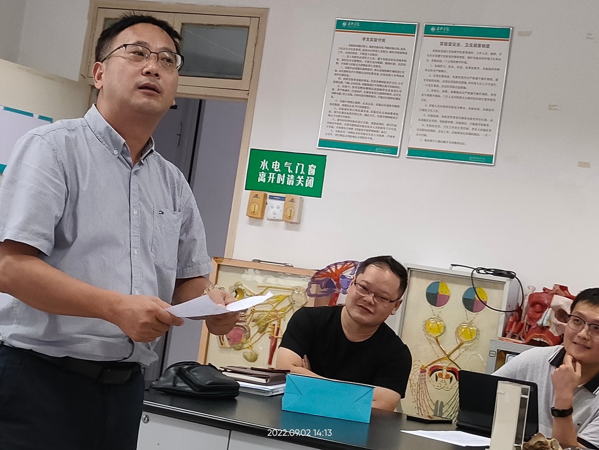 本次集体备课的另一位主备人是护理专业的人体解剖学课程负责人侯杰老师。他汇报上学期的教学情况及存在的问题,提出改进措施,为下一阶段教学工作的开展提供参考性思路。重点围绕人体解剖学的教学大纲、授课计划和考核方式进行讲解细化。