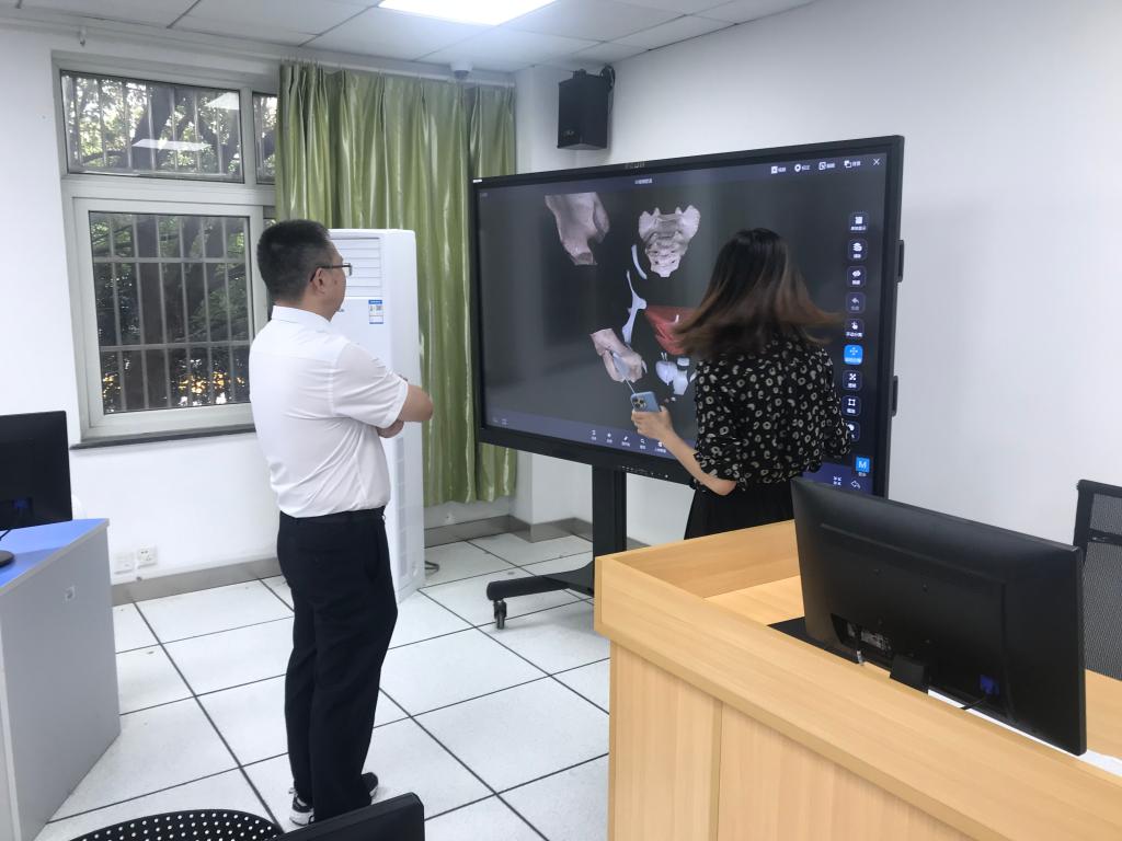 陈新友一行在学院党委书记陈云飞、副书记李联钊、医学实验中心主任蒋小红的陪同下走访调研了人体生命科学馆、医学虚拟仿真实验教学示范中心、临床技能中心、漫蛙漫画 科研平台等实验室建设与运行情况,并亲切慰问了阿里克谢院士。走访过程中,交流了实验教学、大型仪器服务、实验室建设等情况。