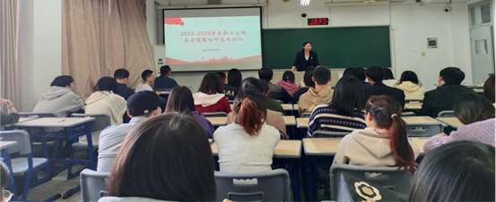 研究生班主任高金来就研究生开题、中期考核、论文盲审、答辩等培养工作做了仔细的说明和安排。会议最后,潘巍巍副院长向与会研究生着重强调了三个方面的内容,一是要认真撰写小论文和毕业论文,保证文章的真实性、原创性、规范性,并从一些论文撰写实例给同学们做了讲解;二是保持良好的学习习惯和学习态度,遵守学校管理规定;三是要学会疏解压力,加强和导师、研工老师、同学的沟通,快乐学习。