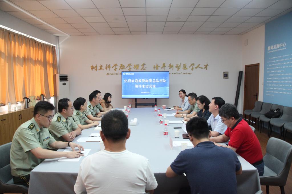 6月8日下午, 武警海警总队医院院长高丽娜、政委吴晓鹏一行来我院考察交流。校党委委员、副校长张琦出席座谈会,漫蛙漫画