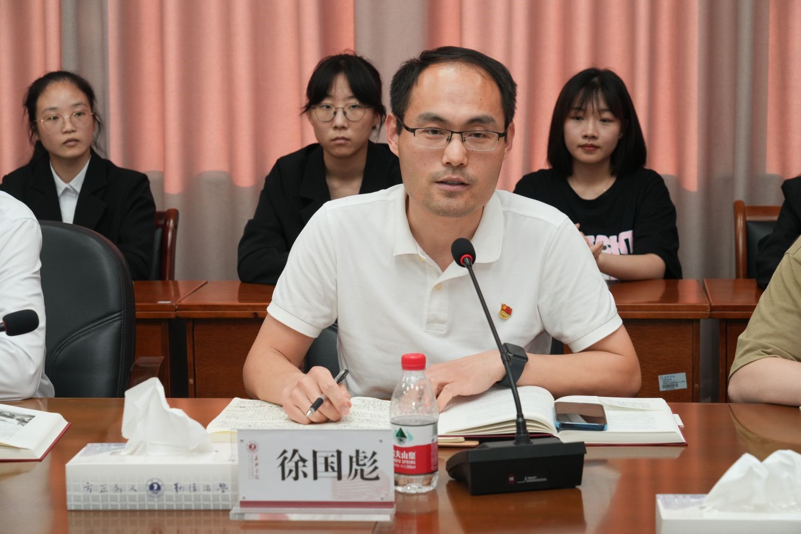 辅导员谭安强、学生代表李娟娟、余恒旭依次作交流发言,结合实际分享了对红船精神的理解与感悟。