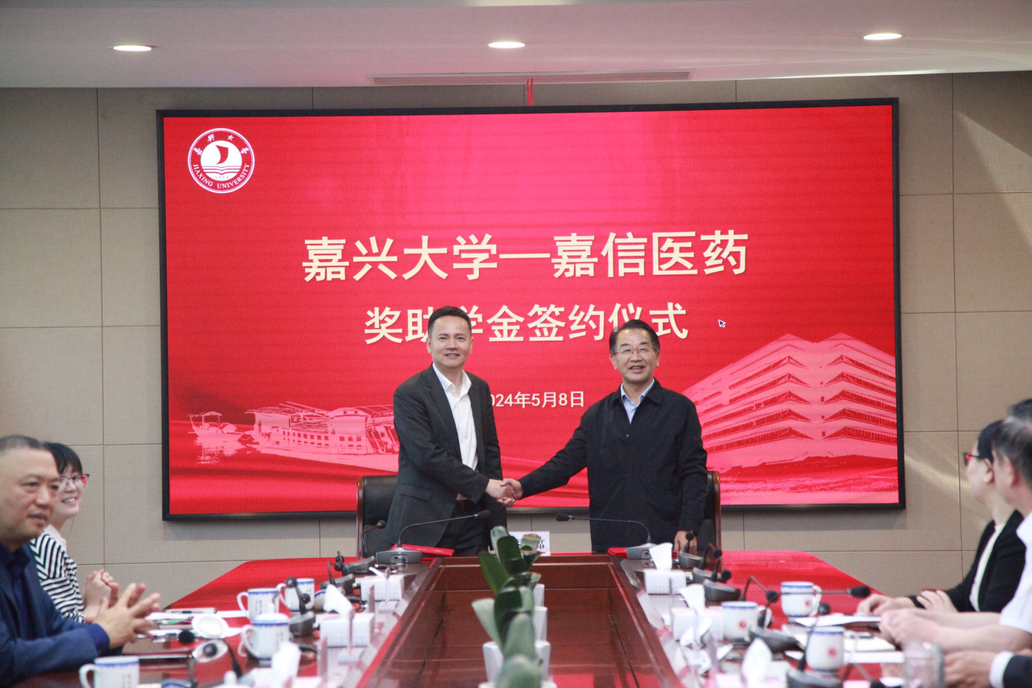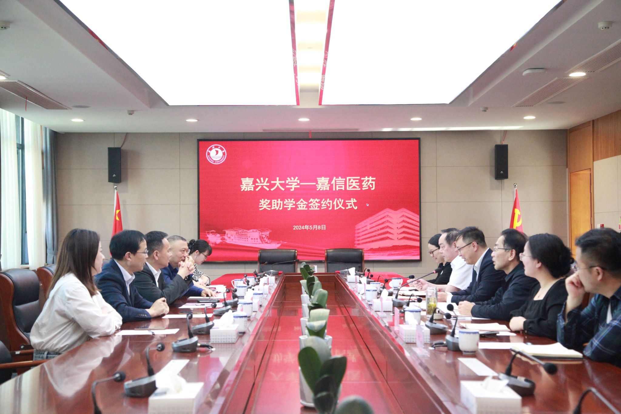 捐赠仪式在行政楼346会议室举行。嘉信医药党委书记、总经理张国荣,党委副书记、工会主席秦川,党委委员、副总经理王国平,副总经理李鸣等;校党委委员、副校长王立玮,社会合作处处长丁玉泉,漫蛙漫画