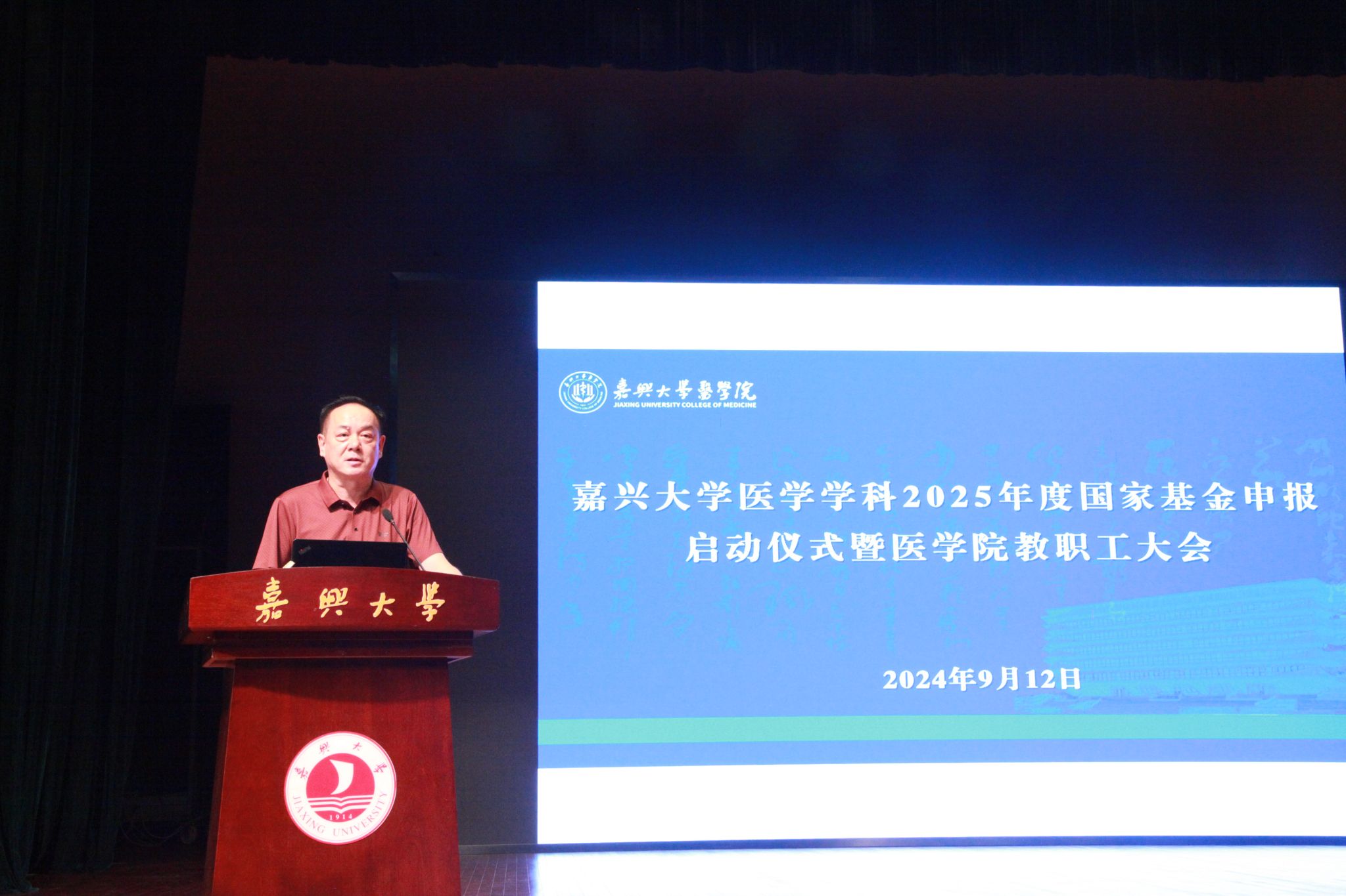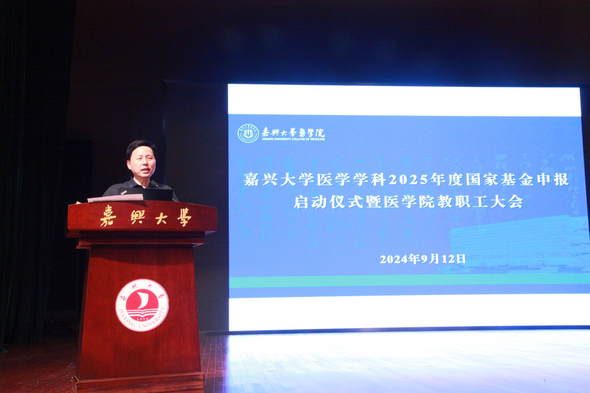 在梁林小剧场召开医学学科2025年度国家基金申报动员大会暨新学期全体教职工大会。学院党政领导、全体教职工参加会议,会议由学院党委书记陈云飞主持。