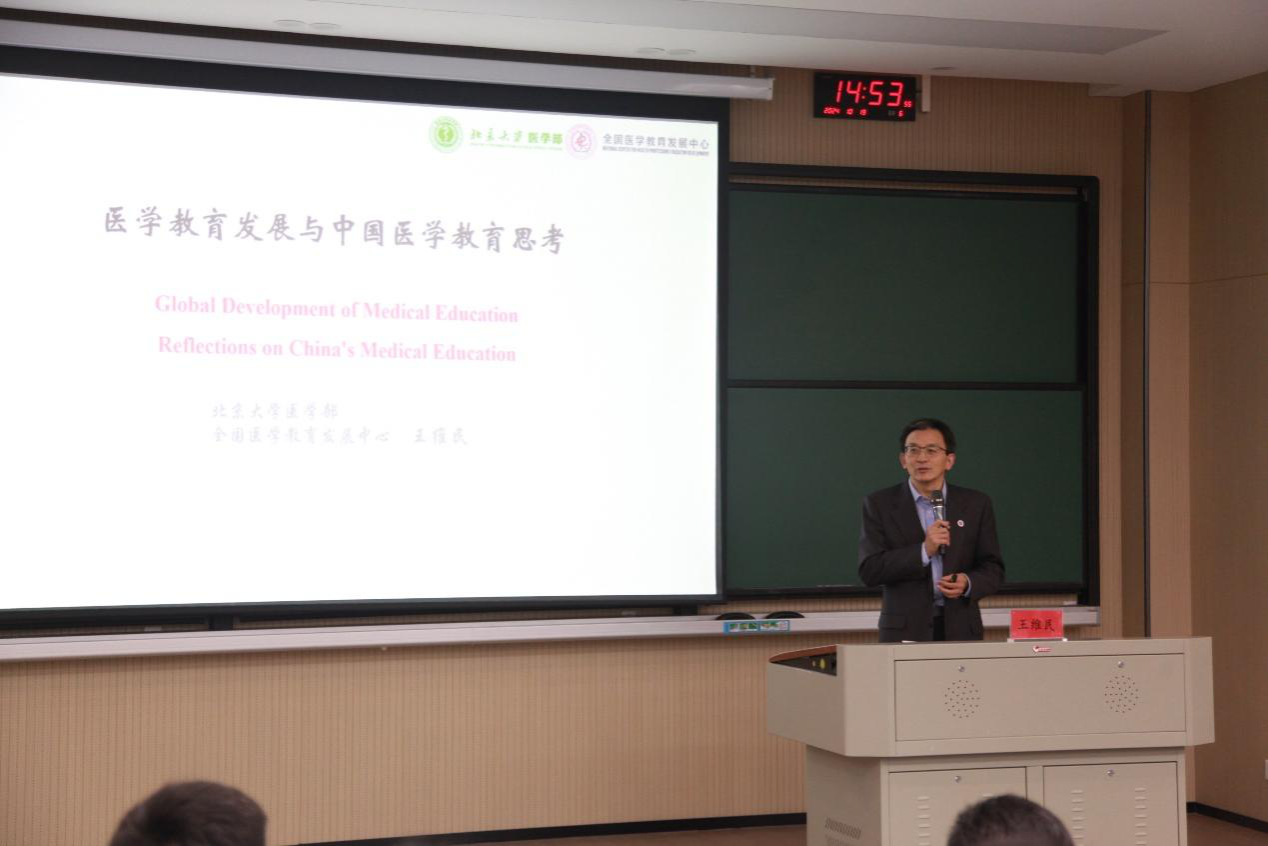 王维民以《医学教育发展与中国医学教育思考》为题,从“全球医学教育发展与AI背景下的应对”“我国医学教育若干问题与解决路径”两个方面,介绍了自己在医学教育和研究的理念和思考。他深入浅出的解析了四代医学教育的发展过程和特点,阐述了医学教育从单纯的专业教育持续拓展成为人类命运共同体的重要内涵。他聚焦我国医学教育问题思考与解决路径,强调要坚持本科医学教育标准,与时俱进做好专业课程内容的更新,正确理解医学教育创新与新医科理念,积极应对AI时代医学教育的变化与策略,如何提高医学教育质量,如何开展医学教育研究与科研,如何科学有效开展医学教师发展和提高教师教学胜任力,并对教育部临床医学专业三级认证体系进行了解读。