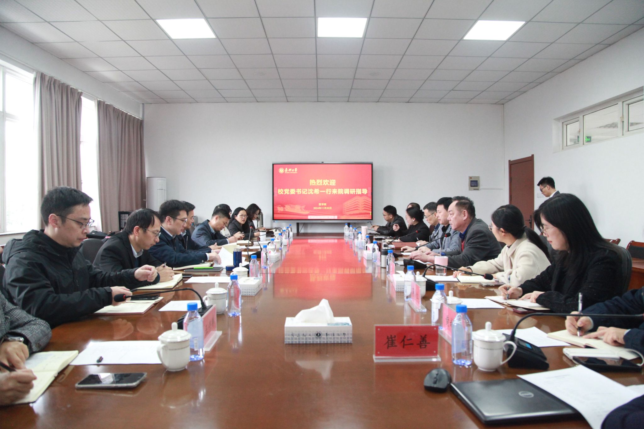 调研指导工作,学院党政班子成员、各系部中心负责人参加会议,会议由学院党委书记陈云飞主持。