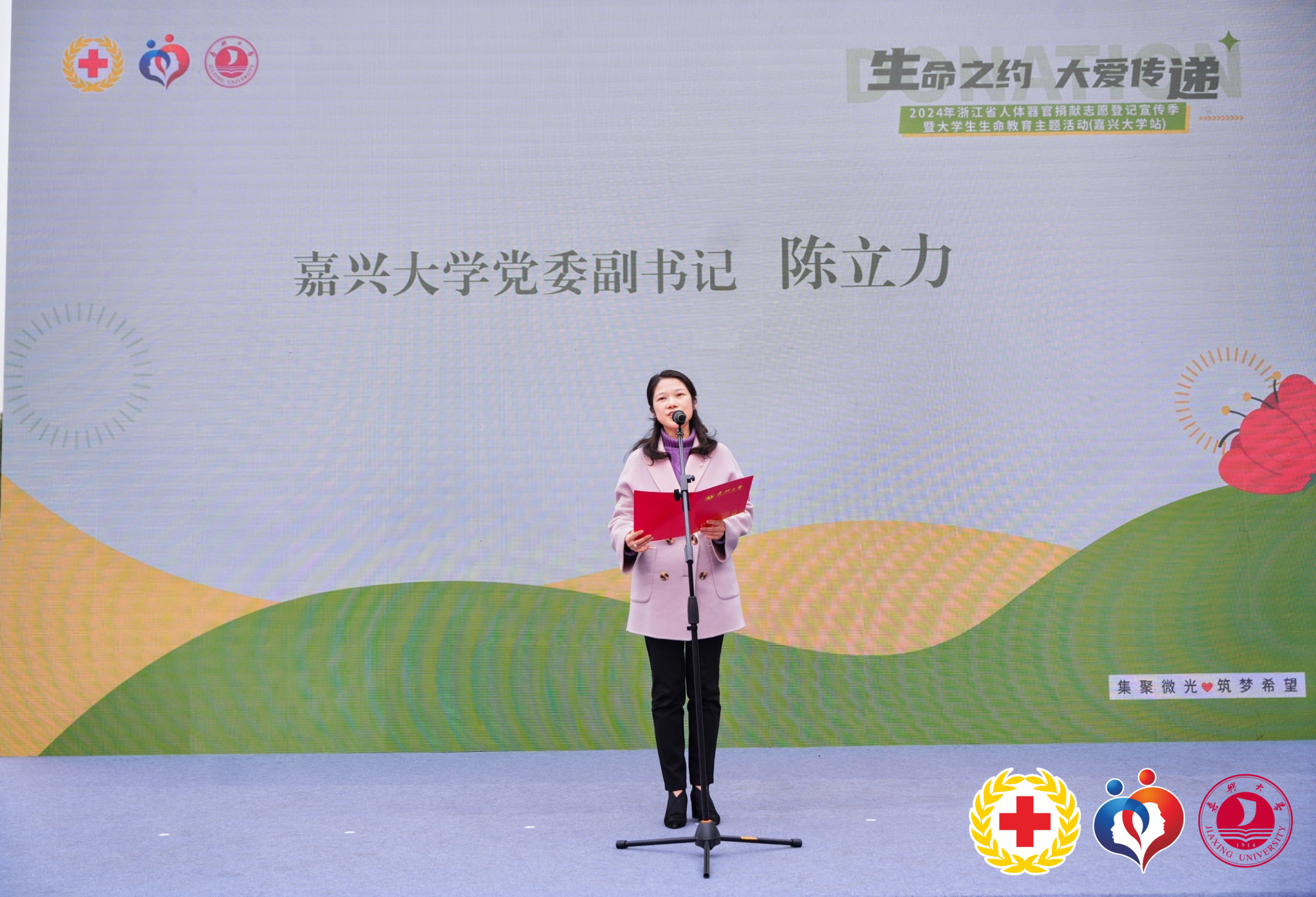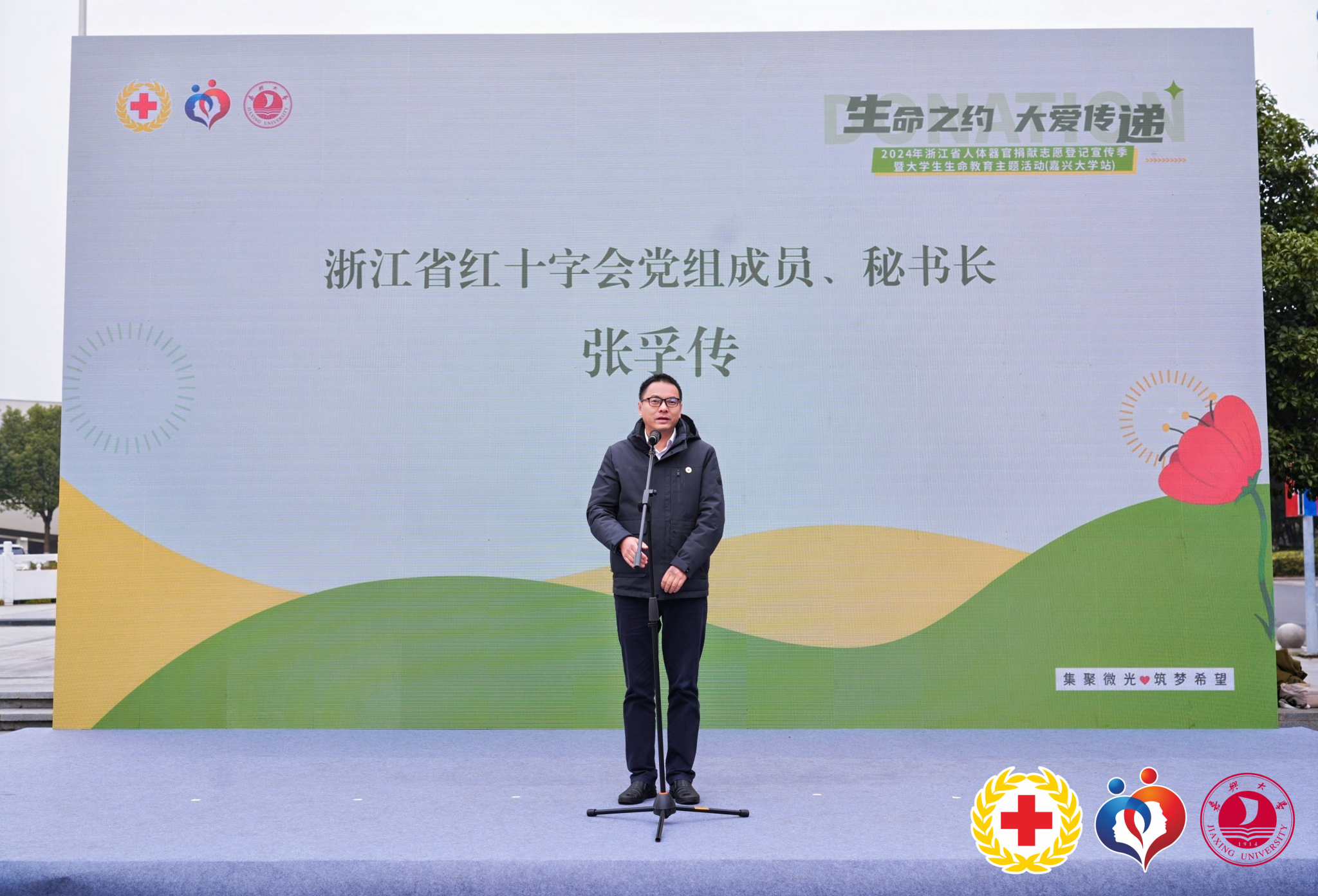 党委副书记陈立力、浙江省红十字会党组成员、秘书长张孚传、嘉兴市红十字会党组成员、副会长杜俊华等领导嘉宾出席了启动仪式并发表致辞。他们高度赞扬了人体器官捐献者及其家属的无私奉献精神,强调了人体器官捐献对于挽救生命、推动医学进步的重要意义,并呼吁更多社会公众特别是青年大学生加入到器官捐献志愿者的行列中来。