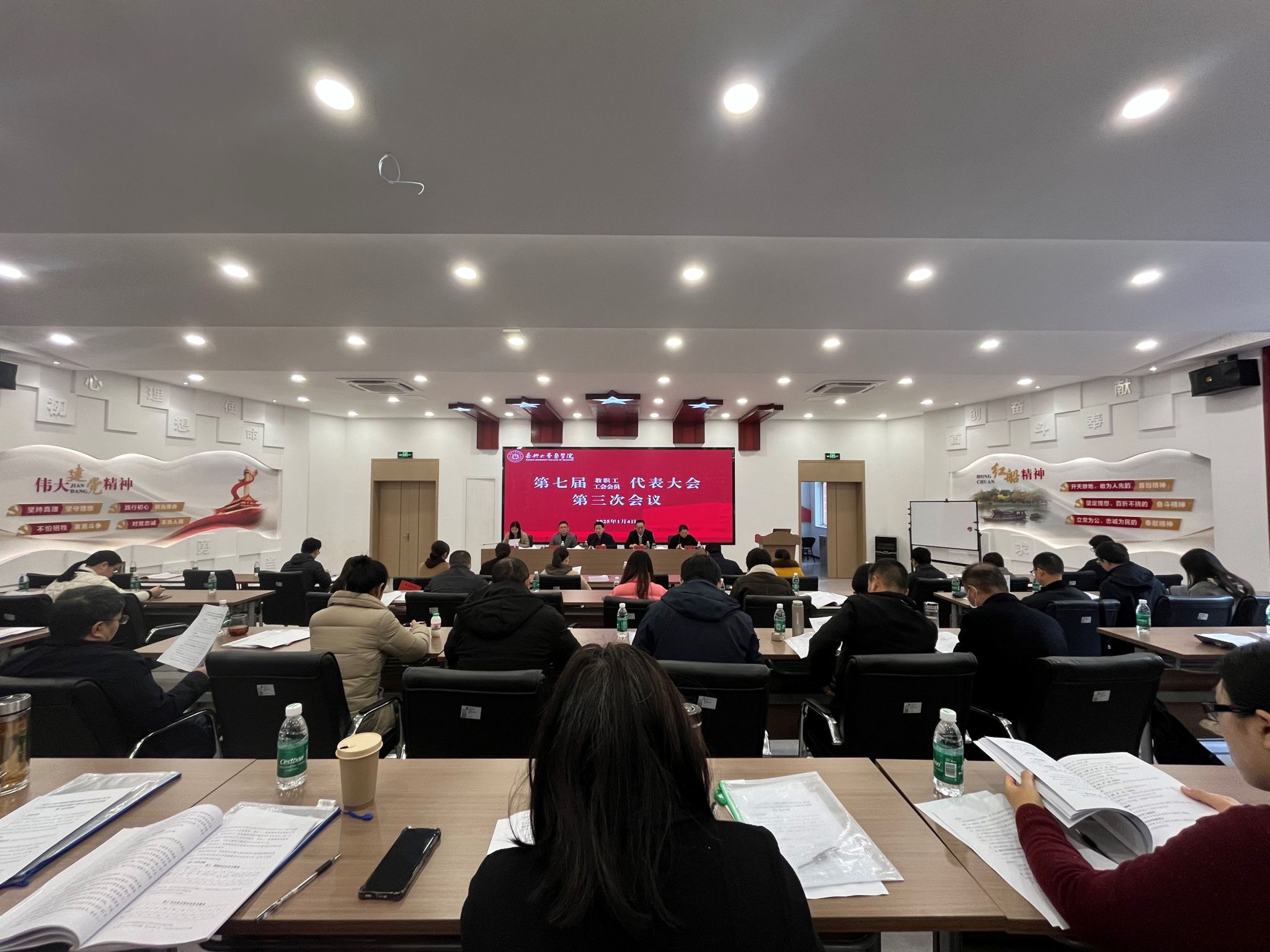 第五轮岗位聘任考核办法和绩效分配原则》其核心目的都是为了促进学院的高质量、可持续发展,增强学院的竞争力,这些办法的成功实施,离不开每一位教职工的理解、支持与配合。他希望,全体教职工能够继续发扬团结协作、勇于创新的精神,以本次双代会为契机,凝聚共识,携手同行,将会议成果转化为实际行动,共同开启学院发展的新篇章!