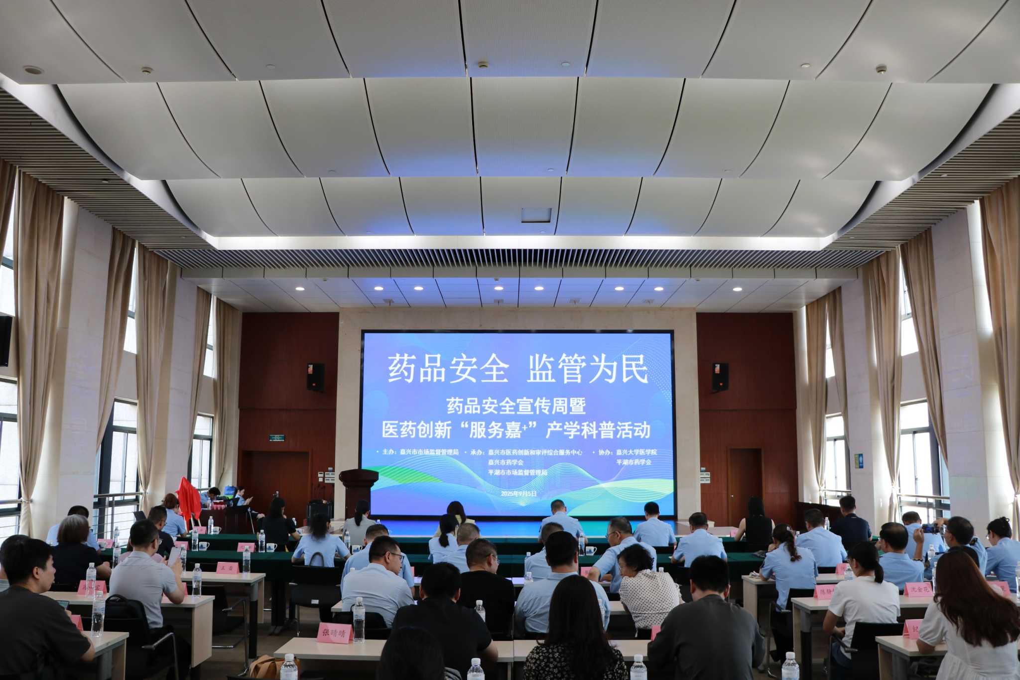 副院长孙李丹、药学系主任黄越燕、副主任张洁带领药学专业学生共同参与,见证了嘉兴市在医药科普与监管领域的重要进展。