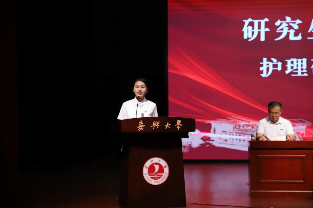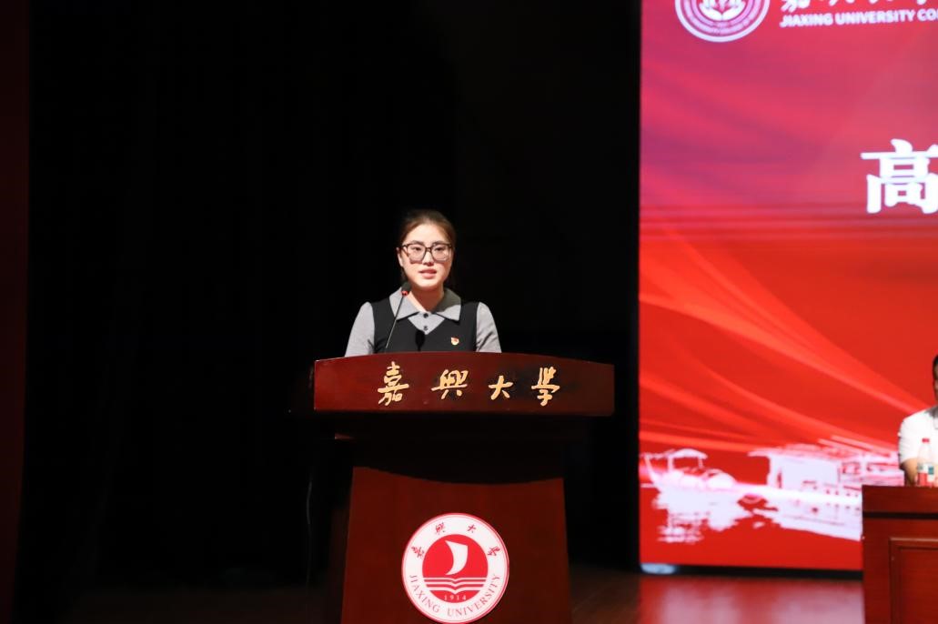 硕士研究生新生代表顾欣雨回顾了在嘉大的成长历程,衷心感谢母校四年来的培养,并围绕做专业的“深耕者”、温暖的“守护者”和彼此的“同行者”三个方面畅谈感悟。她呼吁大家共同成为嘉大漫蛙漫画