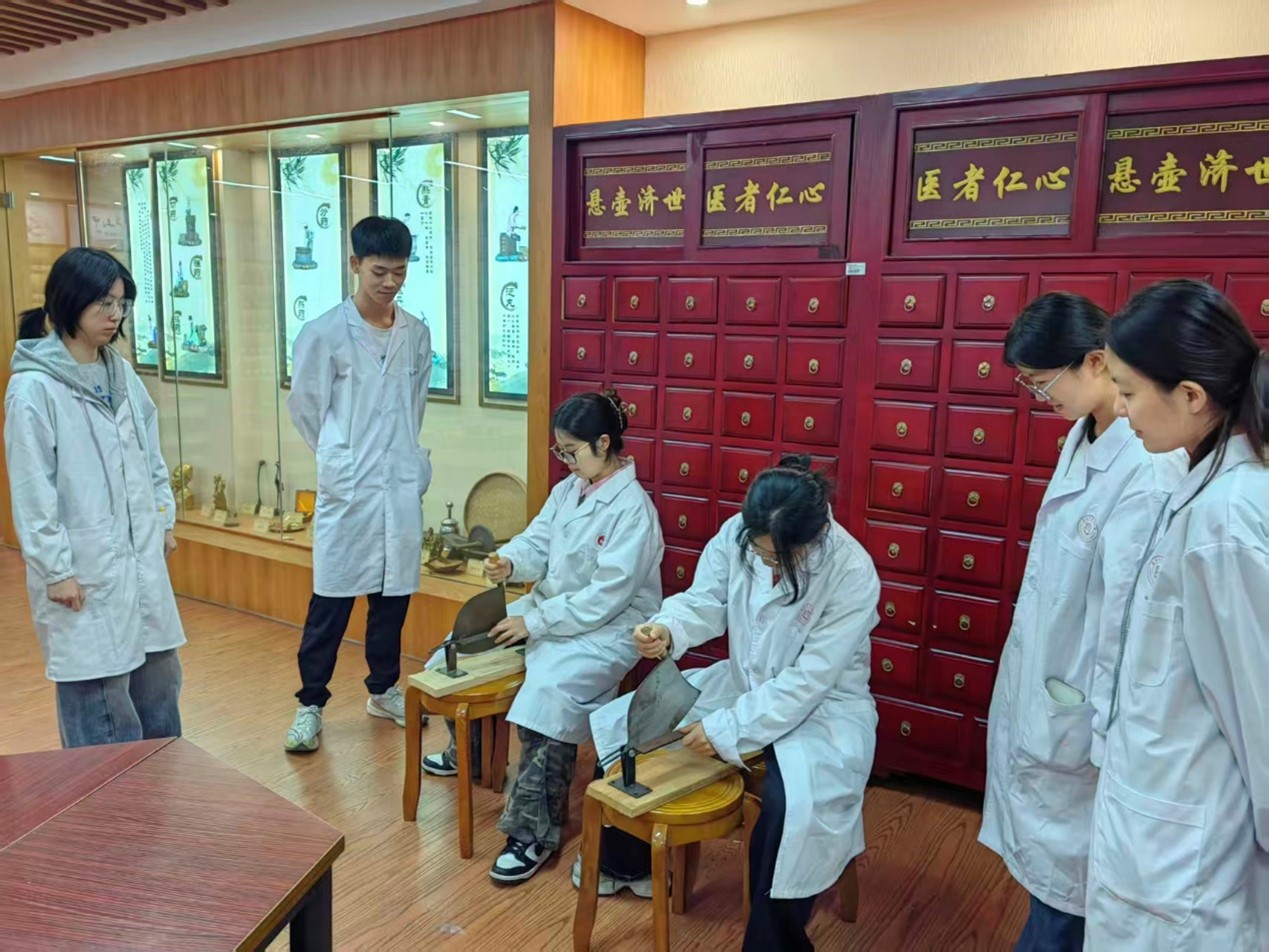 队员分工协作,认真辨识药材性状,体验药材炮制的关键流程。通过亲手操作,同学们深入理解了中药炮制的规范与严谨,有效提升了专业实践技能。