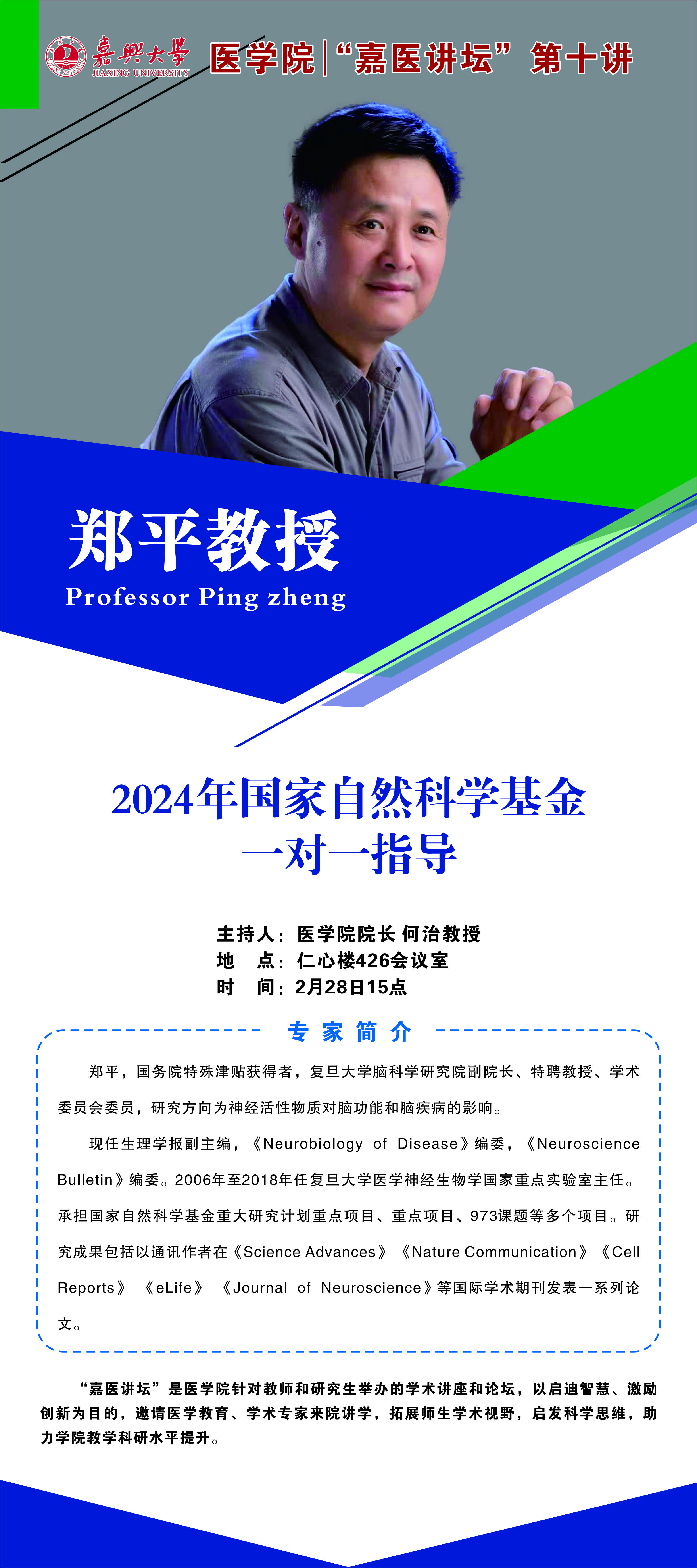 嘉医讲坛第十讲:复旦大学郑平教授