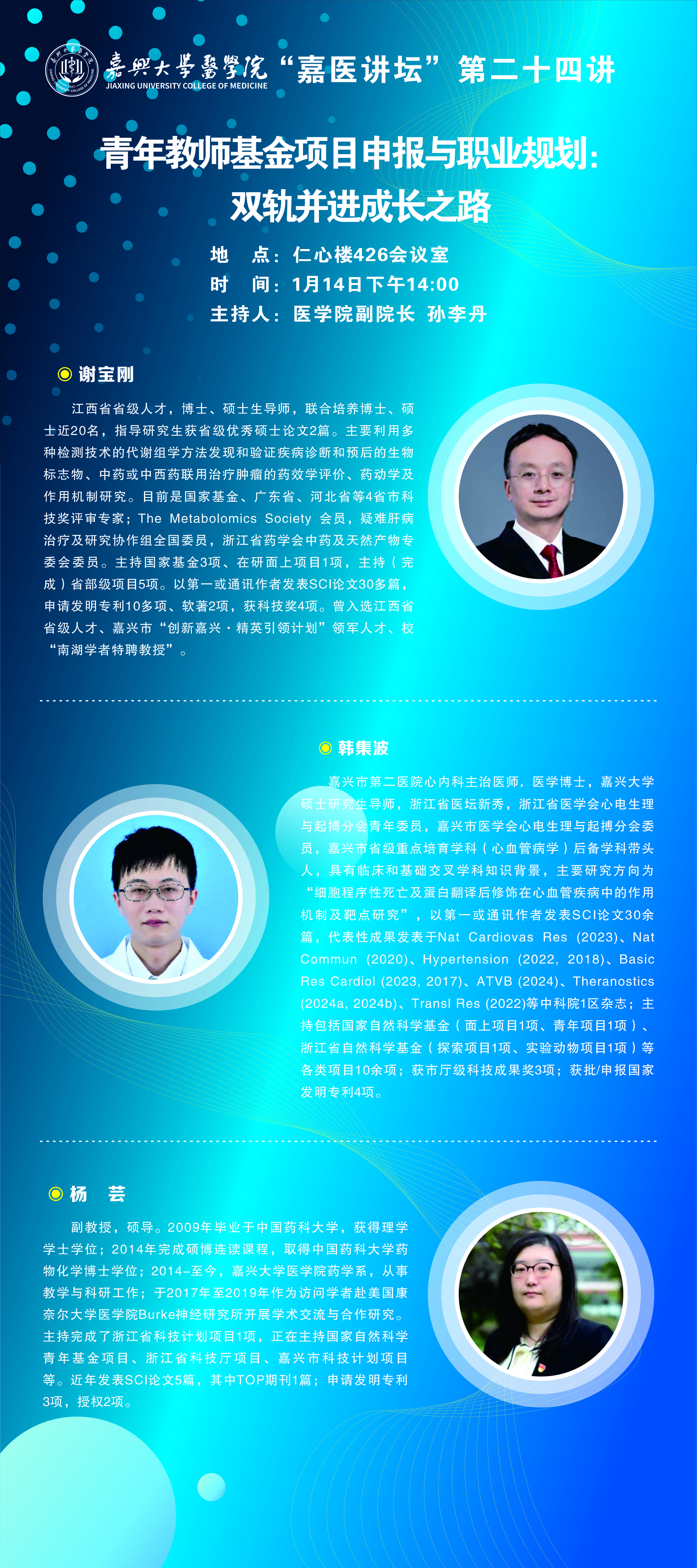 嘉医讲坛第二十四讲-青年教师基金项目申报与职业规划:双轨并进成长之路