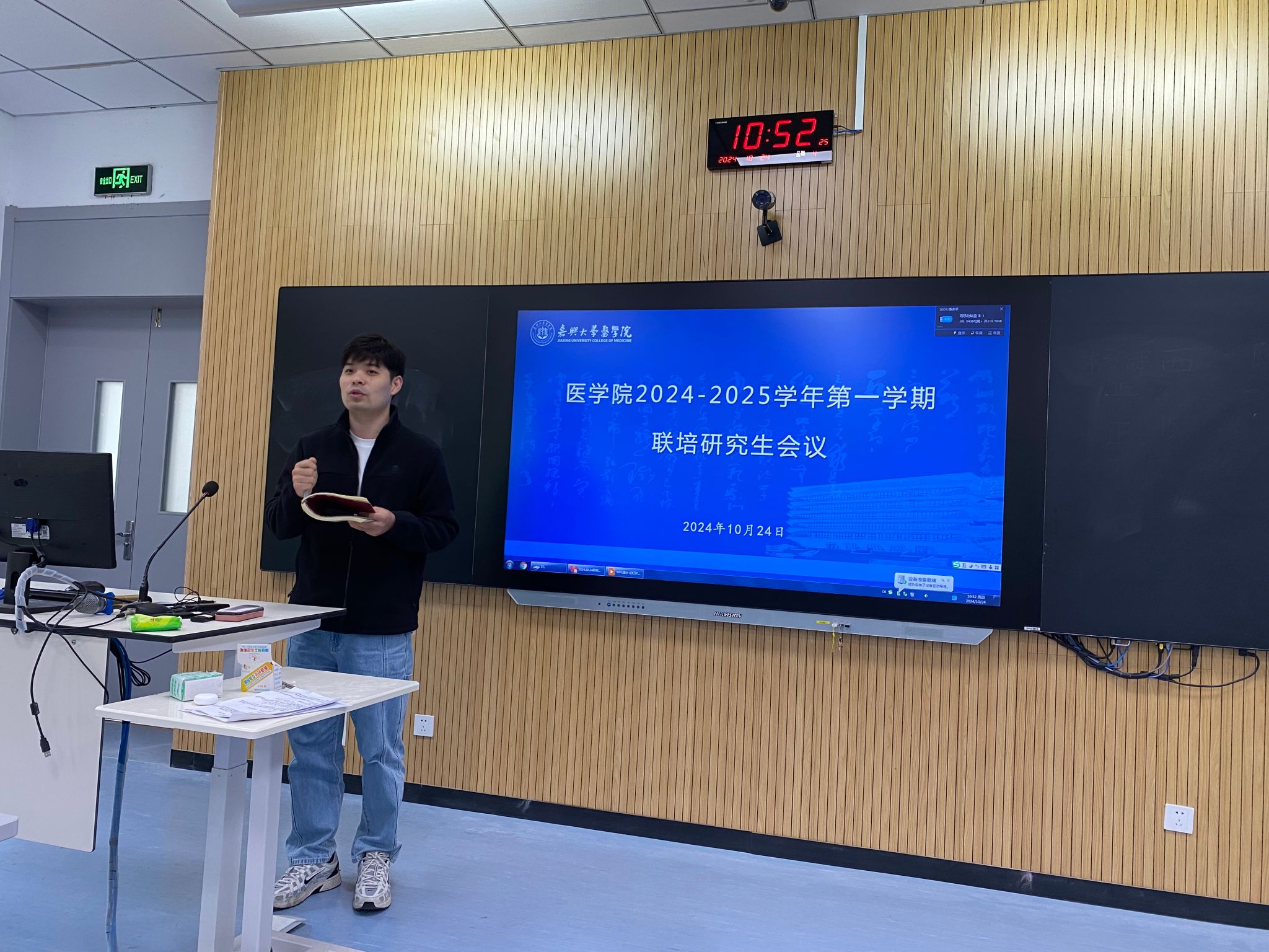为进一步加强和规范联培研究生管理,提高研究生的培养质量,10月24日上午,漫蛙漫画 在仁心楼224组织召开了2024-2025学年第一次联培研究生会议。漫蛙漫画 副院长孙李丹、党委副书记朱莹、研究生管理老师谭安强和高金来参加本次会议。
